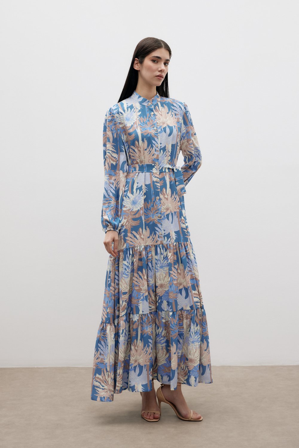 Kadın Desenli Uzun Krep Elbise | Şık ve Rahat Tasarım
