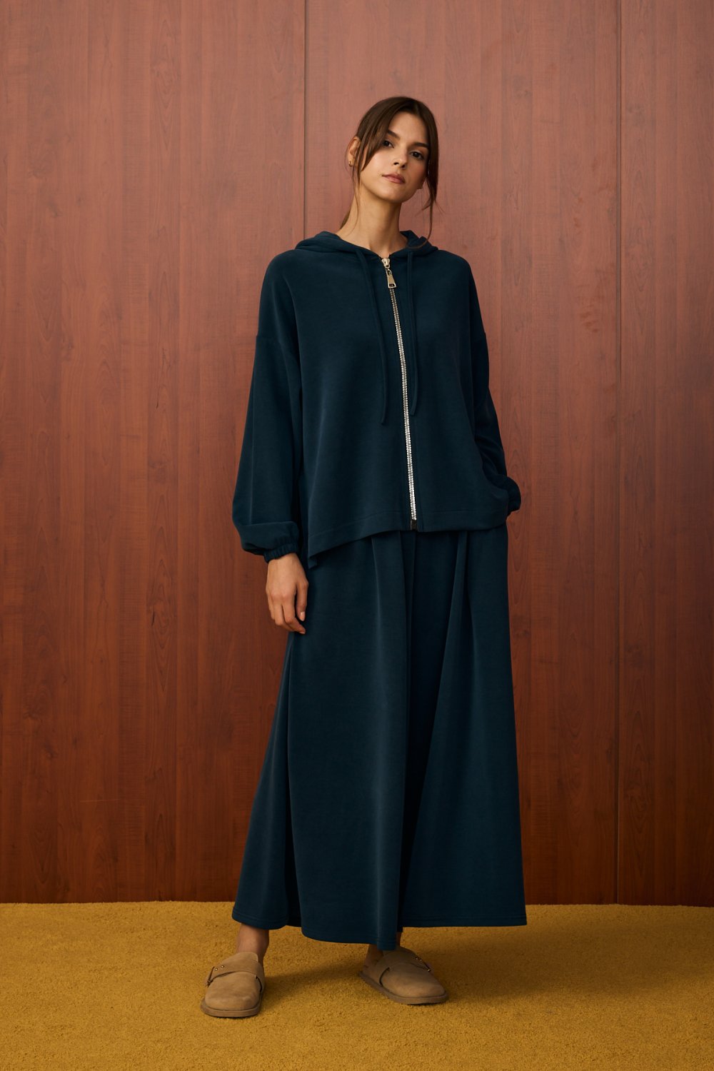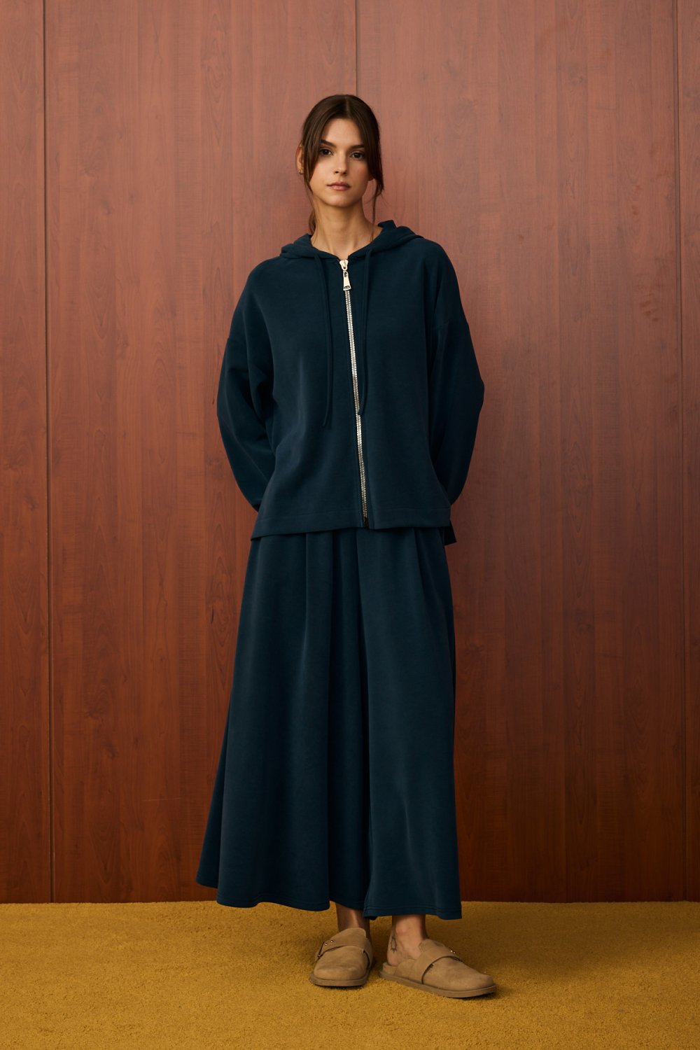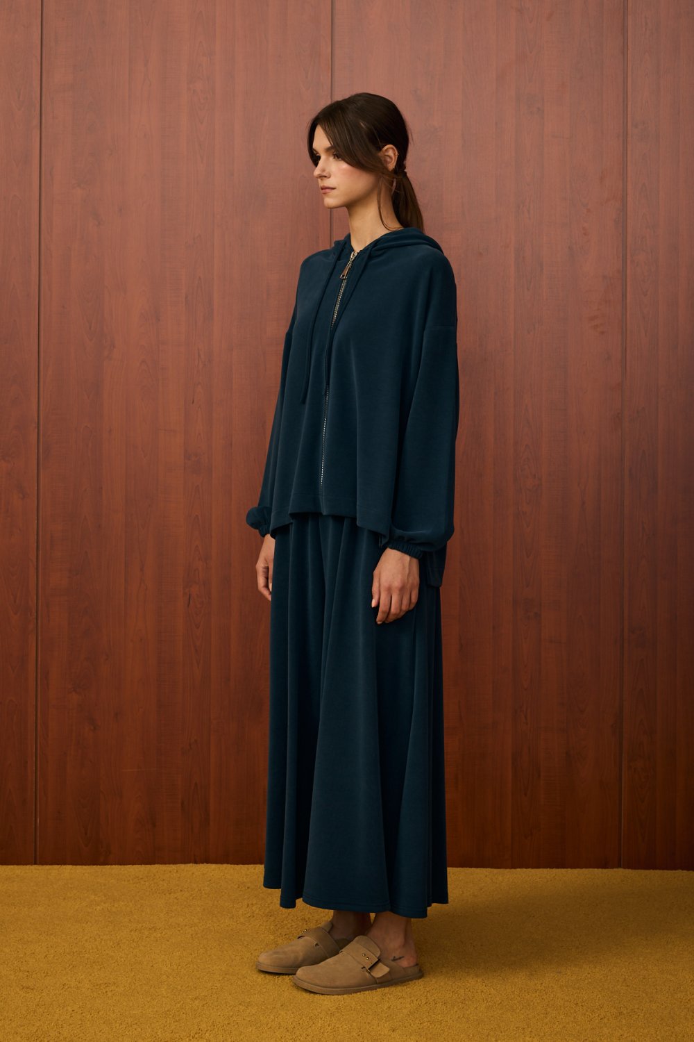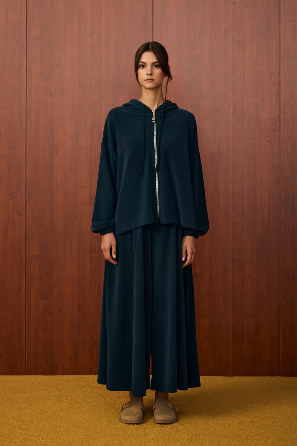 • Üst parça: Kapüşonlu, fermuarlı, salaş kesim, bilekleri lastikli
