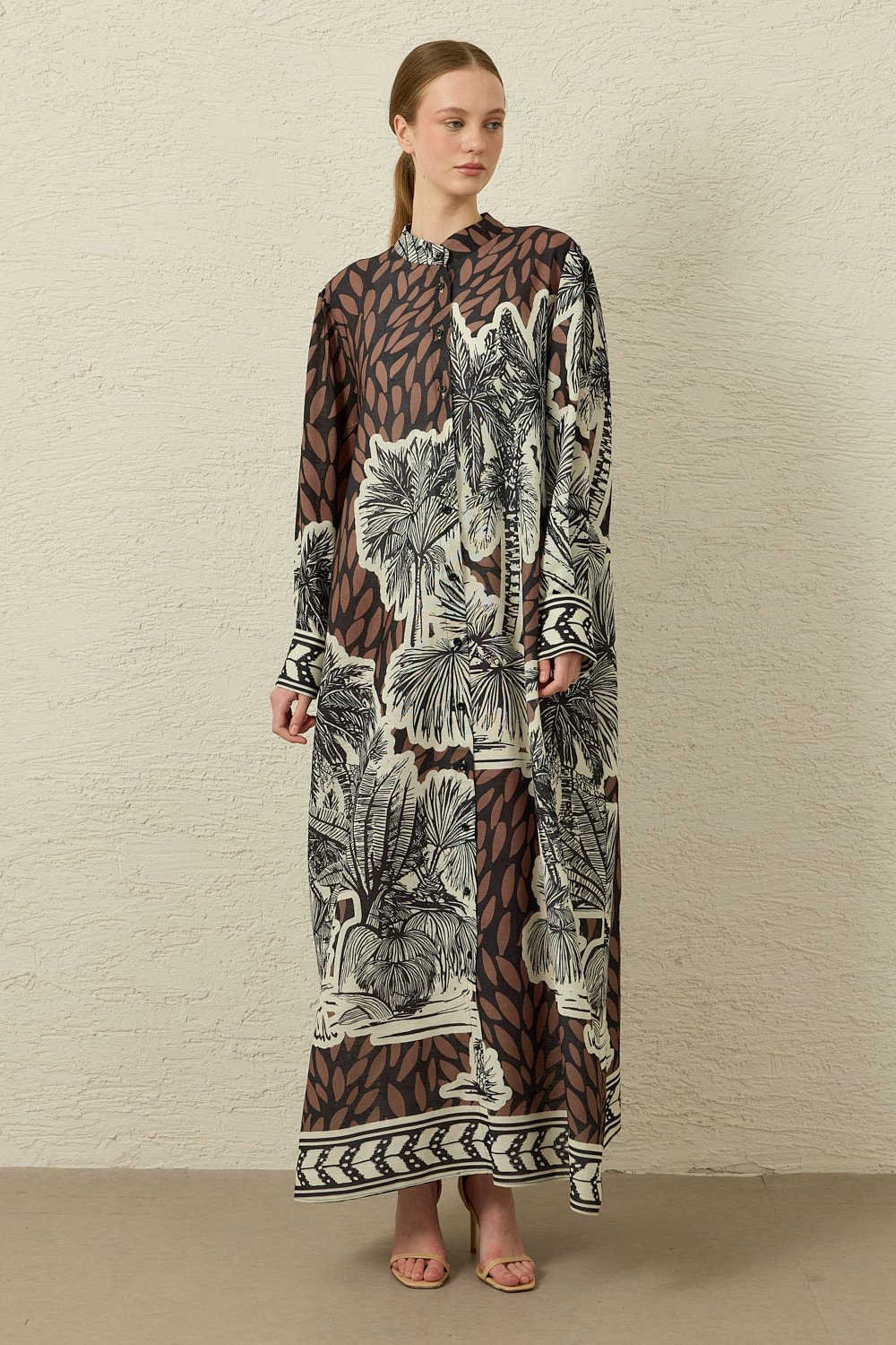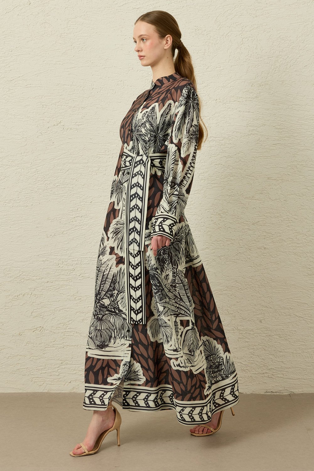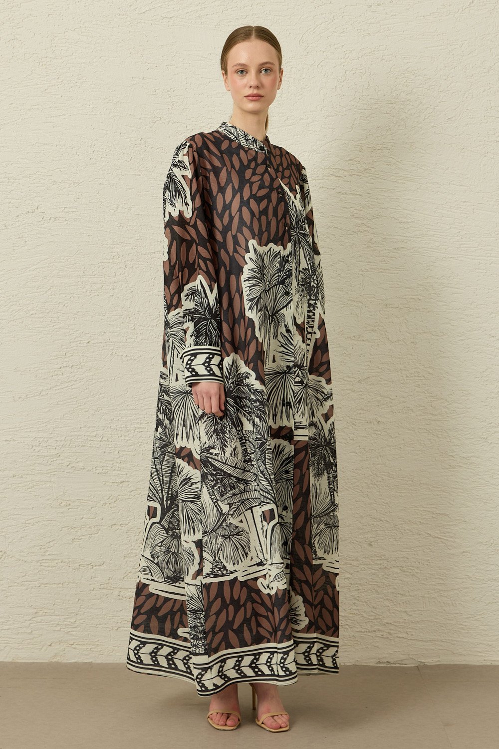 Bali Linen Elbise-Kahverengi-MRW-1845