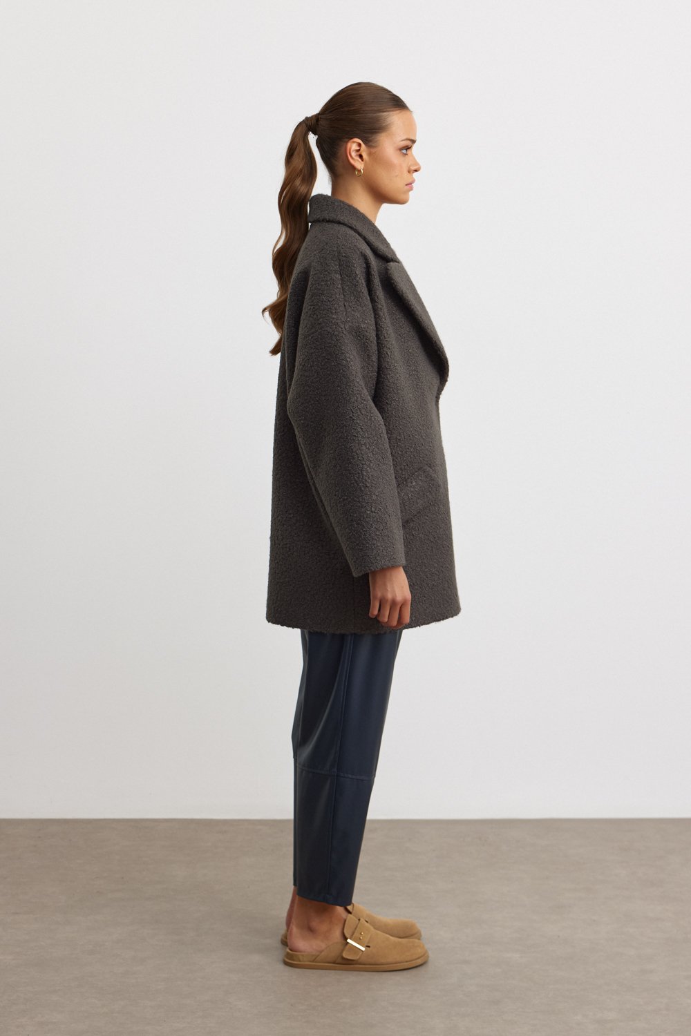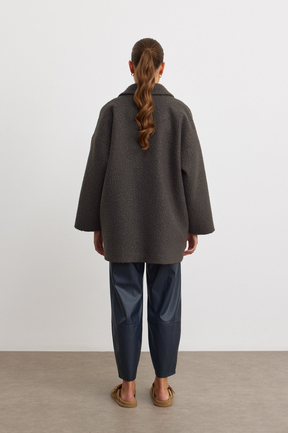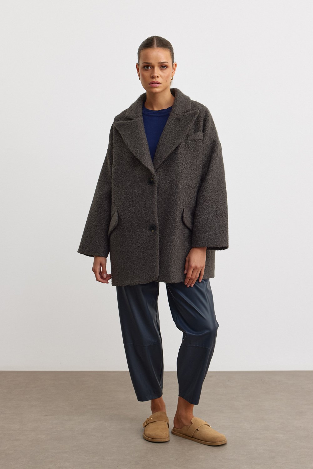 Ürün Açıklaması: Bu şık ve rahat oversize kaban, yumuşak teddy kumaştan üretilmiştir. 80 cm uzunluğu ve geniş kesimi ile soğuk havalarda sıcacık bir konfor sunar. 1/2 beden aralığına uygun olan bu kaban, modern ve zarif tasarımı ile her gardırobun vazgeçilmez parçalarından biri olacak. Mankenin boyu 173 cm olup, üzerindeki beden 1 dir.