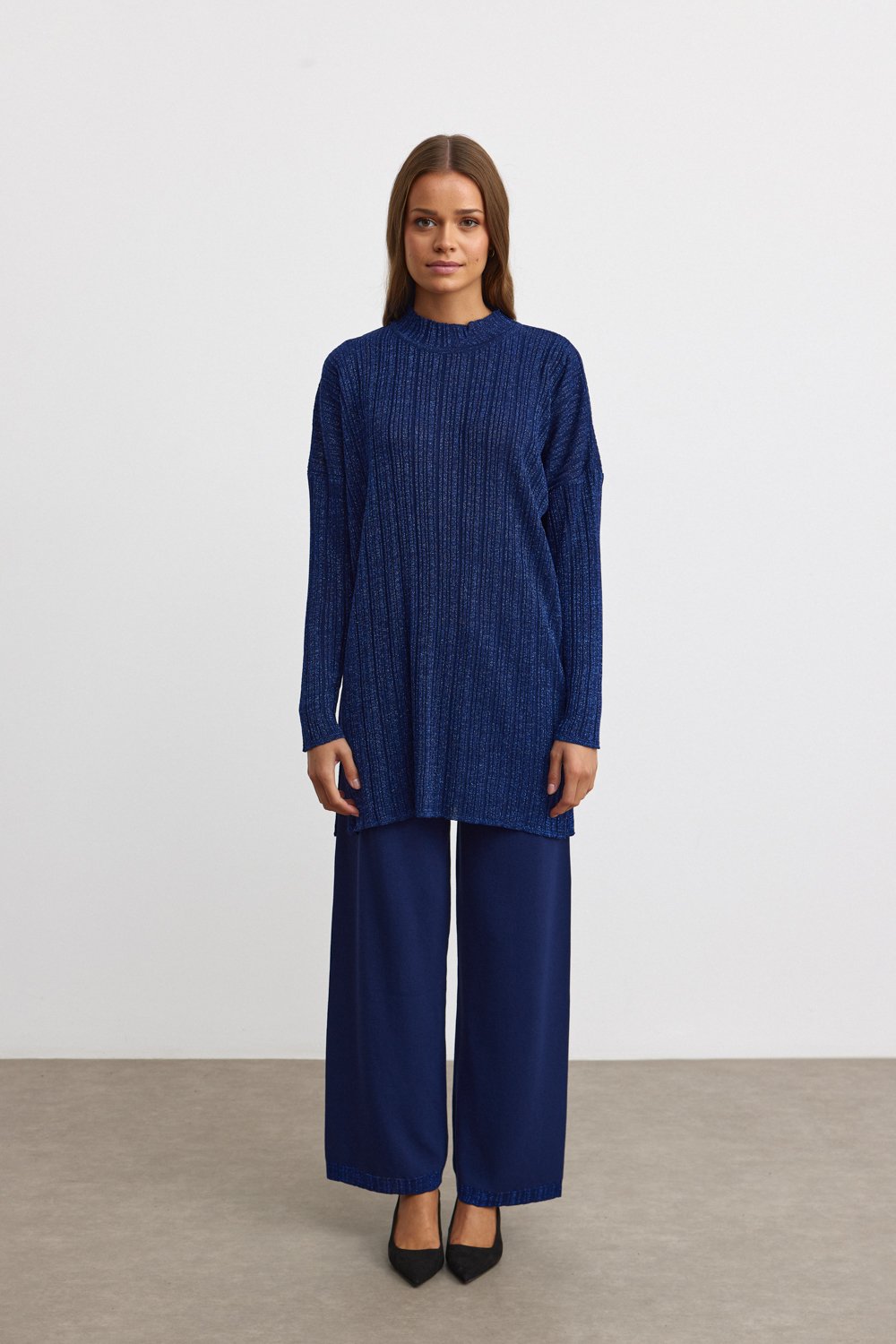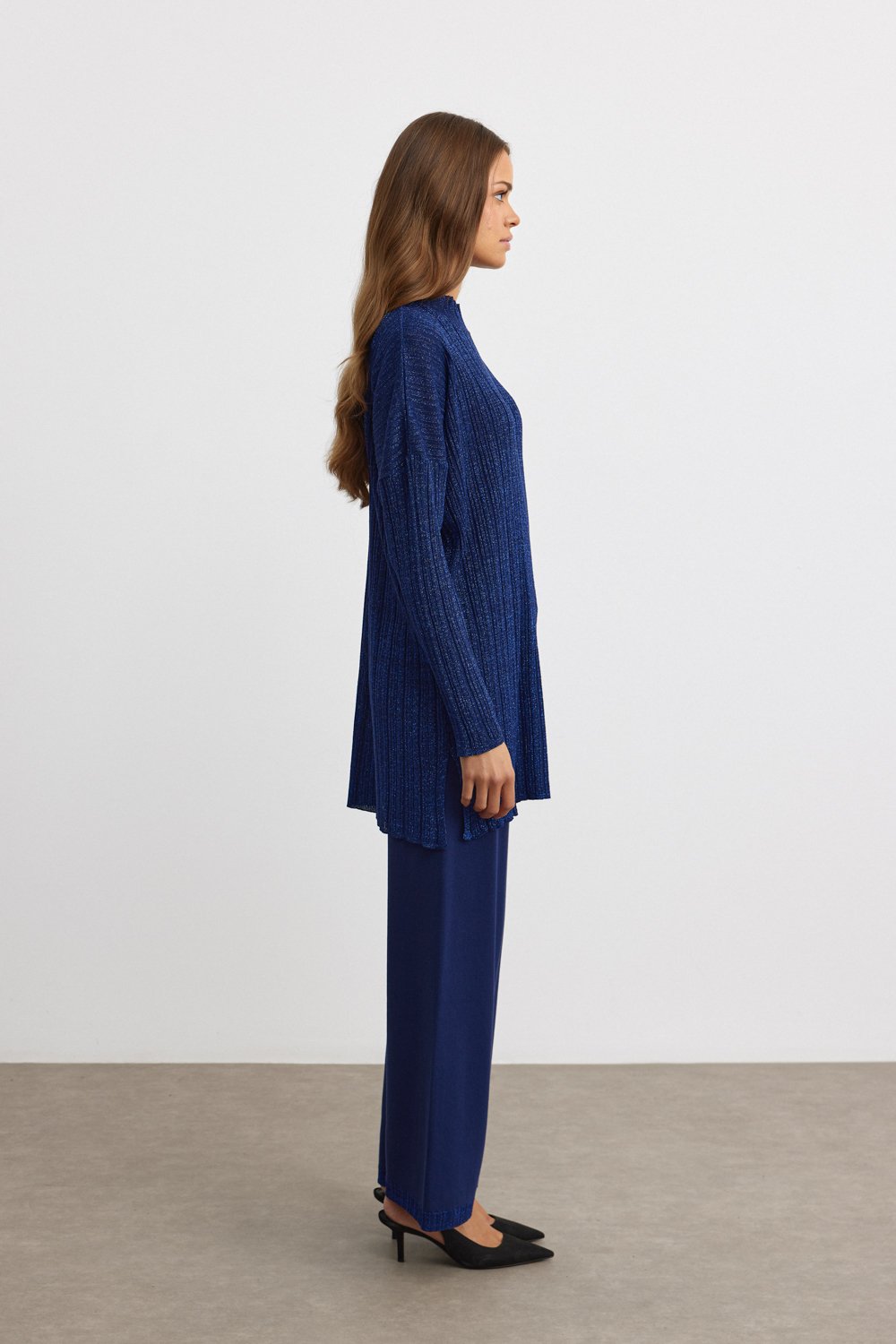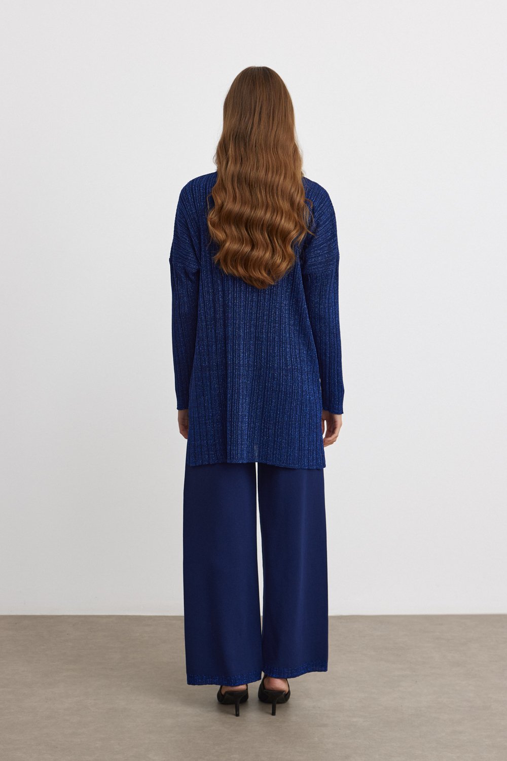 Ürün Açıklaması: Şıklığı ve rahatlığı bir arada sunan bu saks mavi renkli triko takım, günlük kullanım için mükemmel bir tercihtir. Özel ipliklerden üretilmiş merserize pamuk ve viskon karışımı kumaşı ile yumuşak bir doku sunarken, nefes alabilir yapısıyla konfor sağlar. Üst kısmı 85 cm uzunluğunda olup, diz hizasında dökümlü bir kesime sahiptir. Geniş ve rahat pantolonuyla takım olarak şık bir bütünlük yaratır. 36-44 beden aralığına uyumlu olan bu takım, esnek yapısı sayesinde her bedene kolayca oturur.