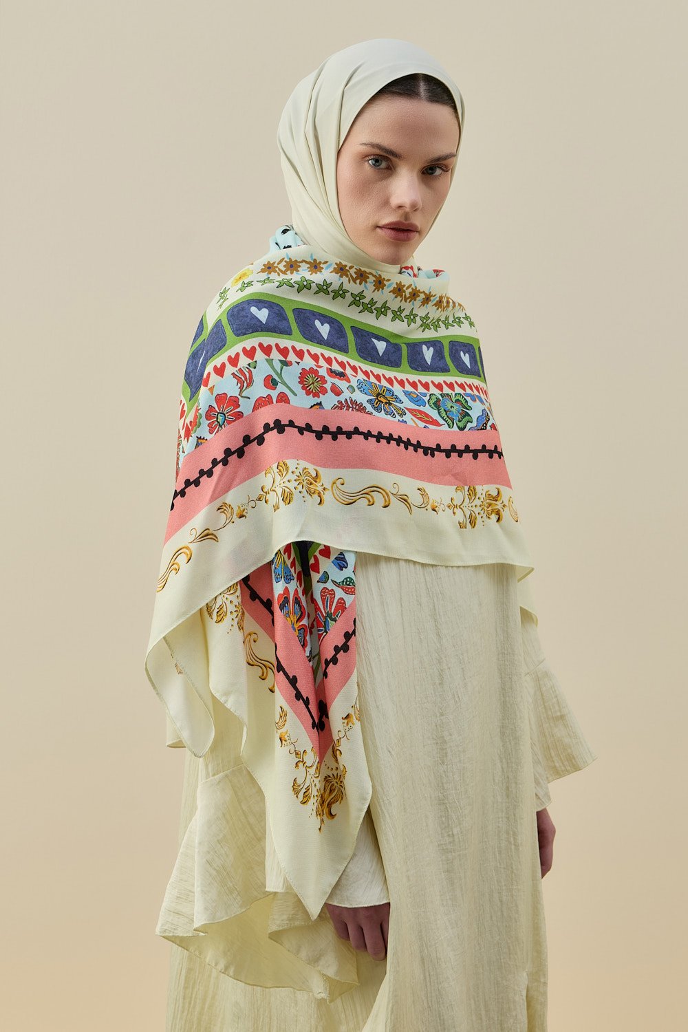 Doğal pamuk dokusuyla nefes aldıran omuz şalı, dört mevsim kullanabiliceğiniz zamansız bir aksesuar.Şıklığı ve rahatlığı bir arada isteyenler için vazgeçilmez.
