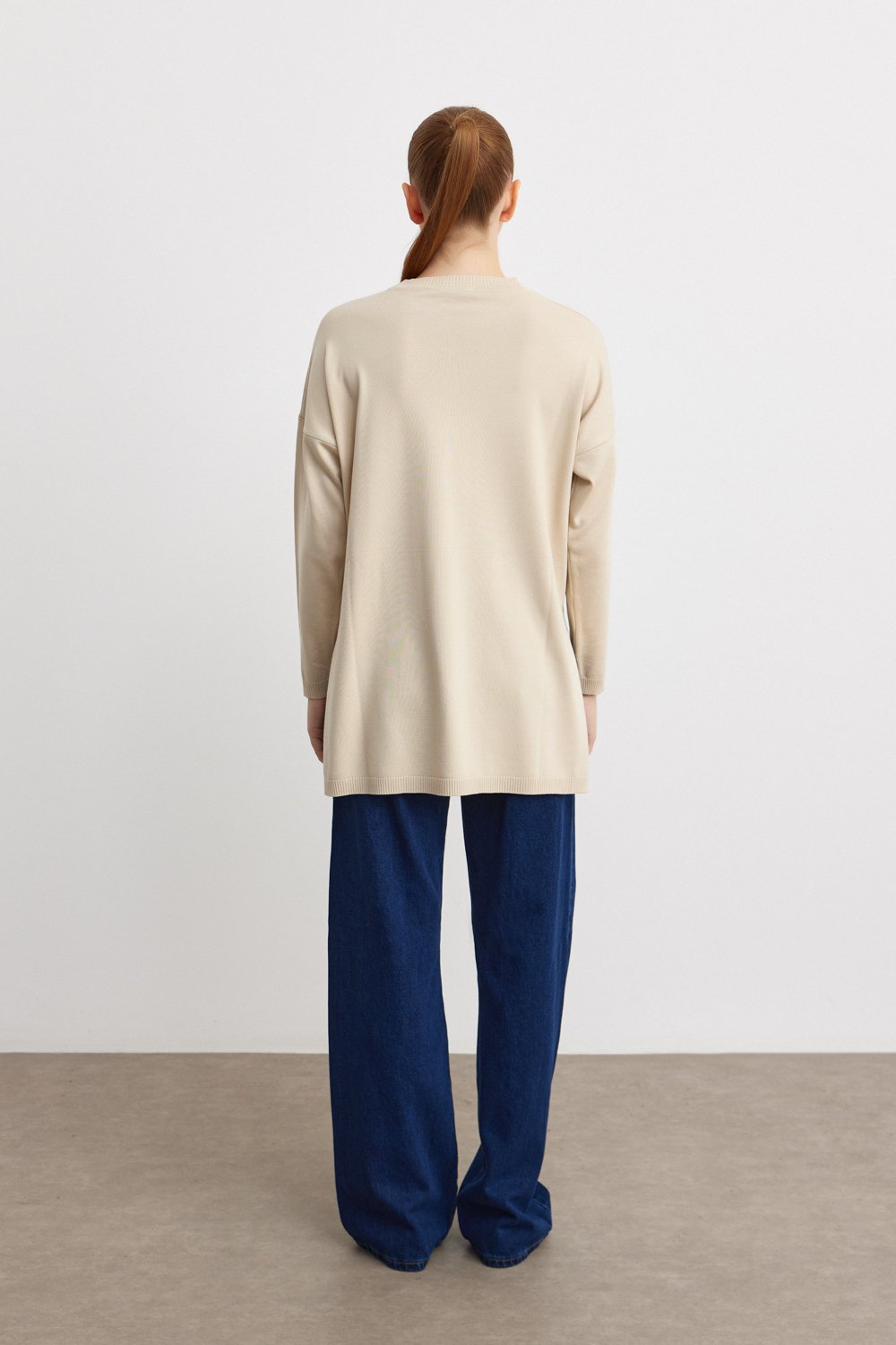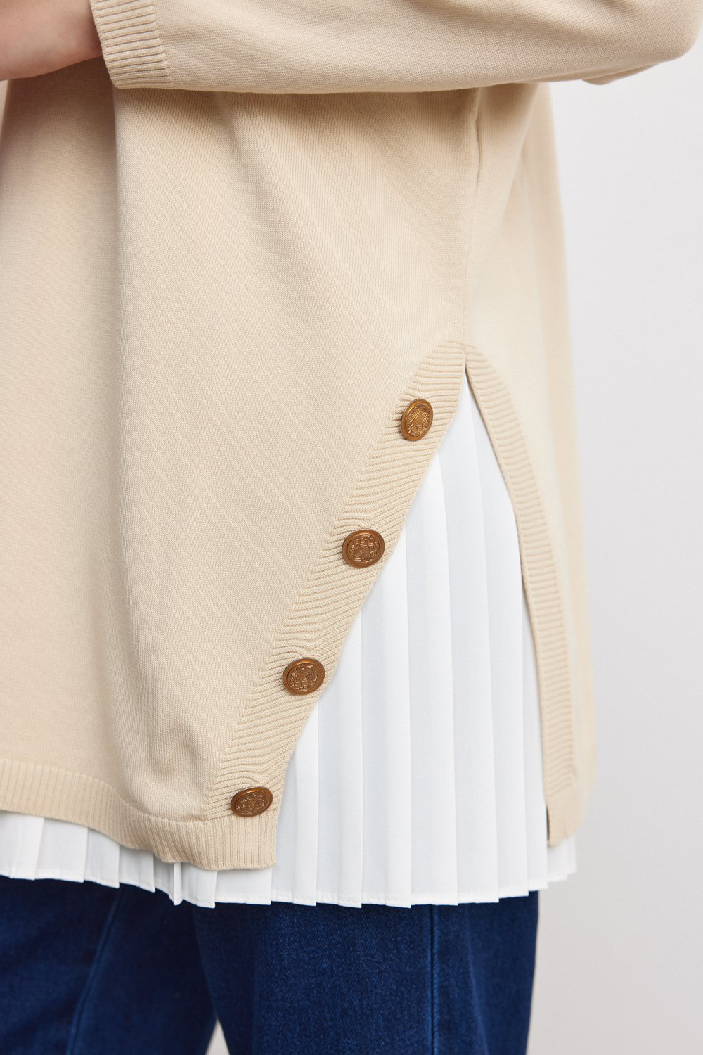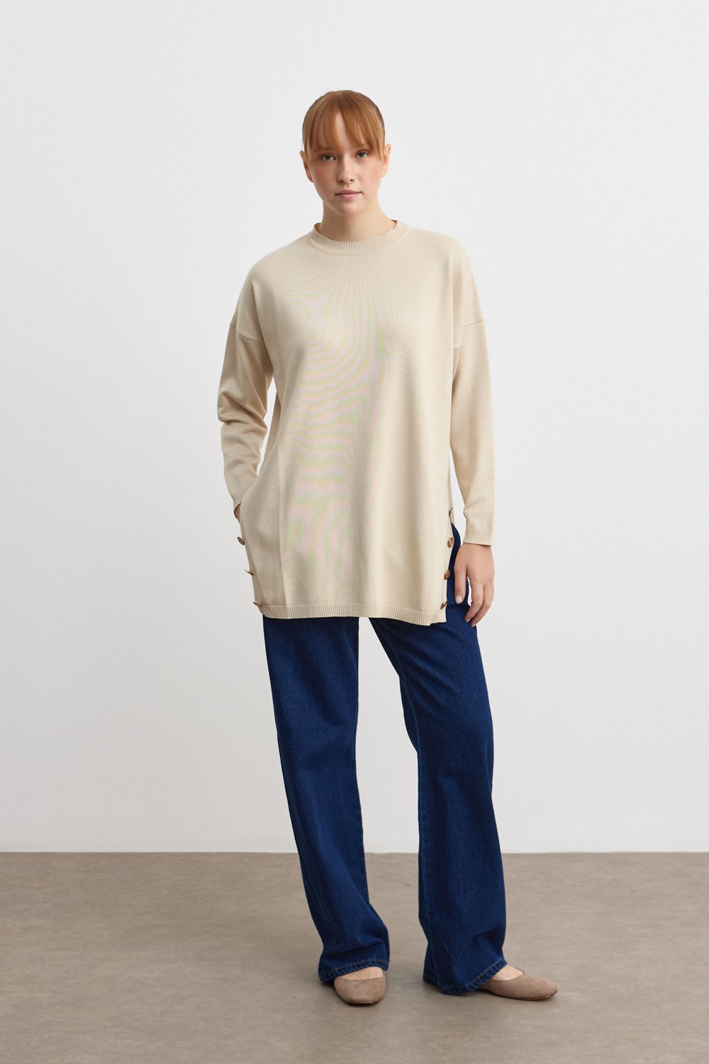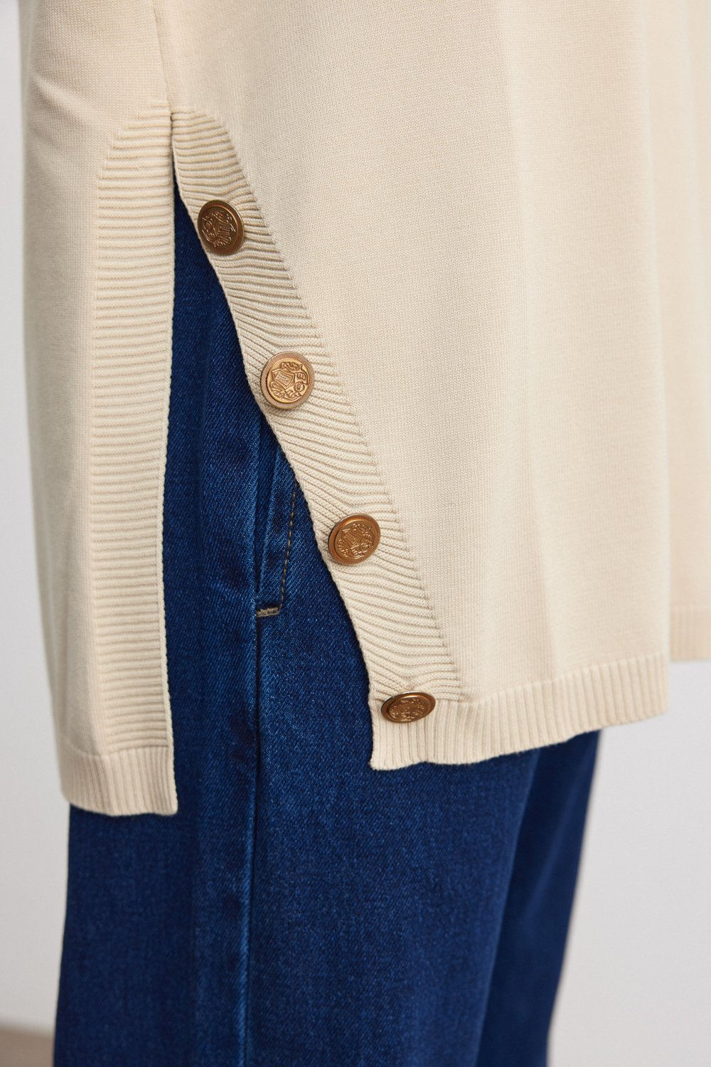 Merserize Pamuk Viskon Karışımlı Yan Düğme Detaylı Triko