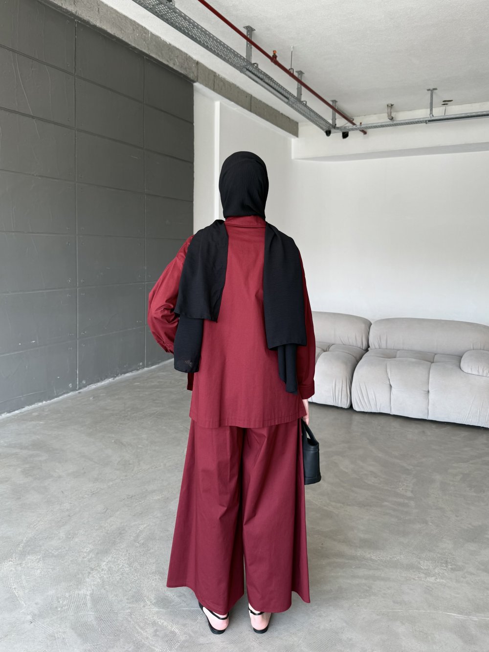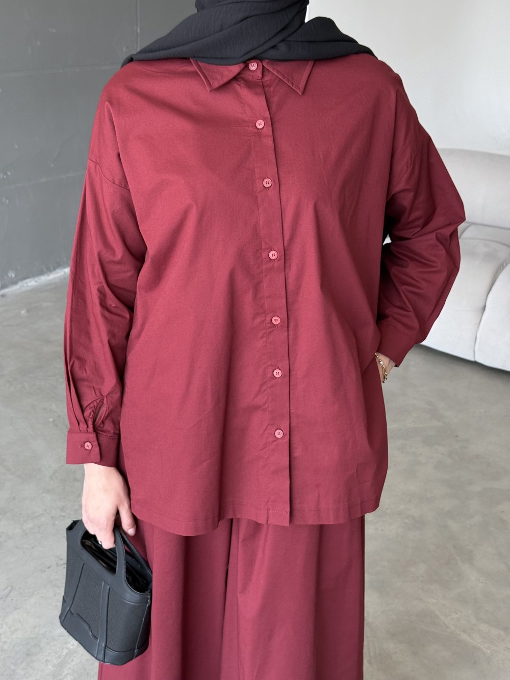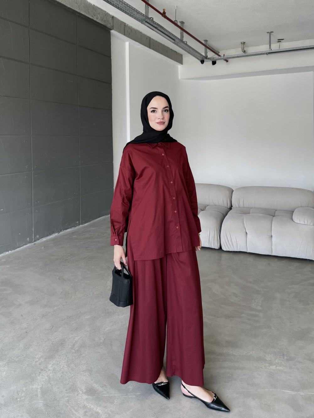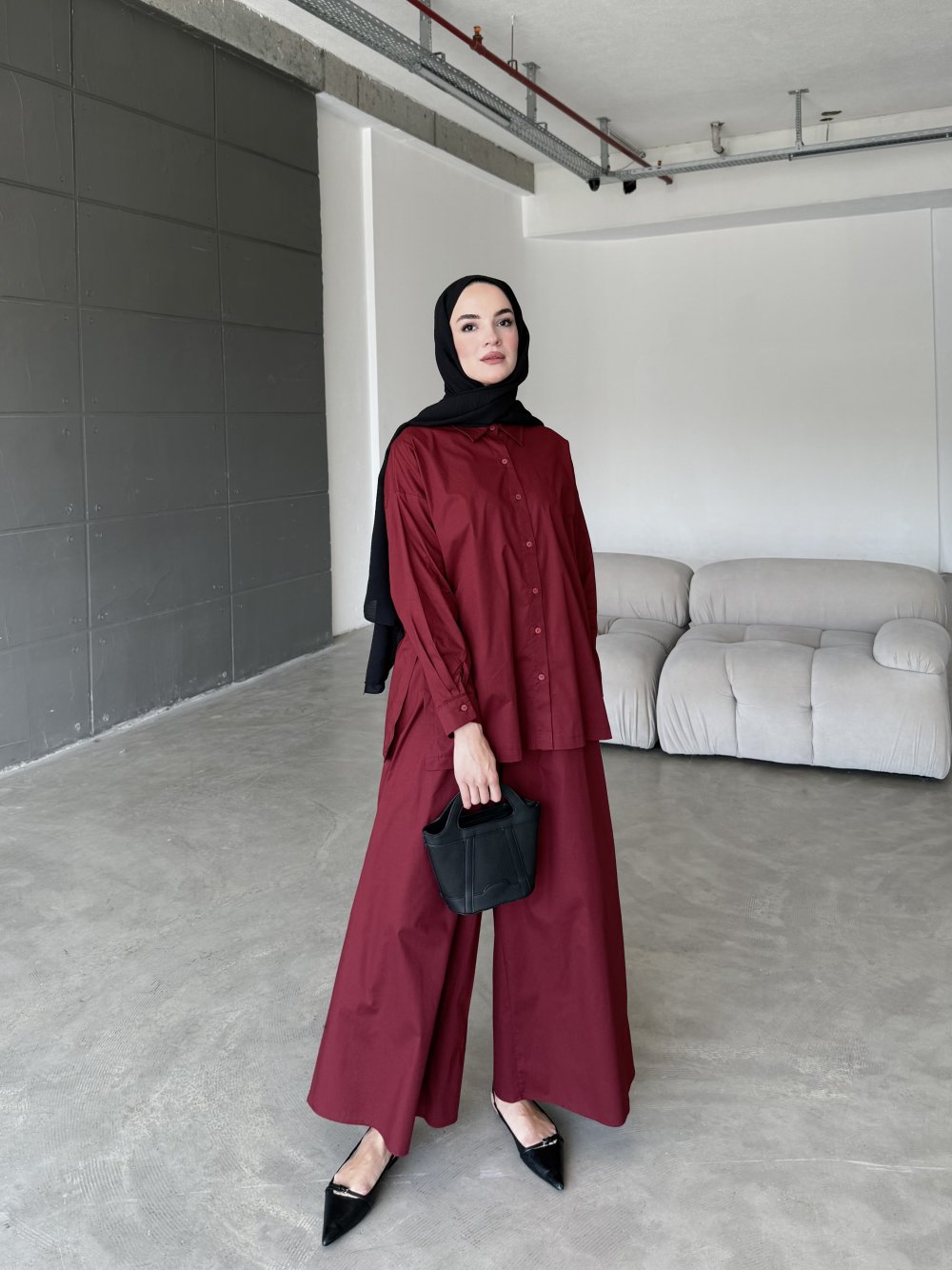 Doğal poplin  kumaşı ile konfor ve şıklığı bir araya getiren bu takım, sıcak havalarda hafif dokusuyla vazgeçilmeziniz olacak. gömlek tasarımı hareket özgürlüğü sağlarken,  Bol kesimli pantolonu sayesinde rahat bir kullanım sağlarken, sofistike tarzıyla hem günlük hem de özel kombinlerde kullanılabilir.