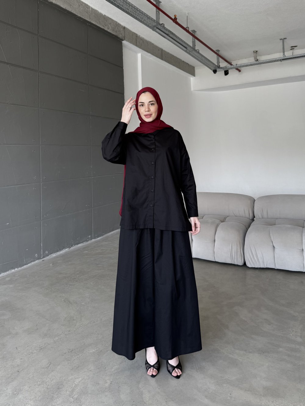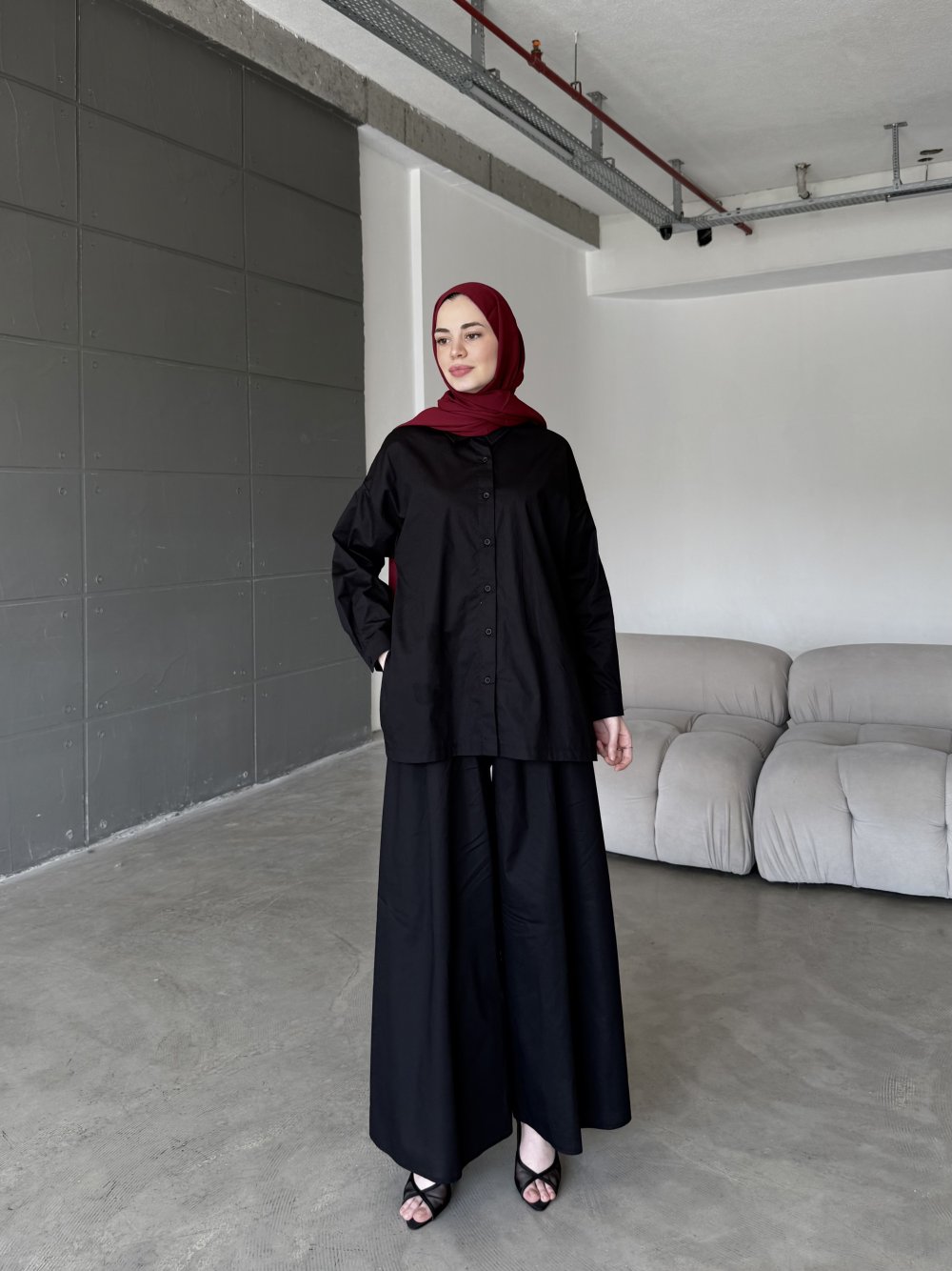 Doğal poplin  kumaşı ile konfor ve şıklığı bir araya getiren bu takım, sıcak havalarda hafif dokusuyla vazgeçilmeziniz olacak. gömlek tasarımı hareket özgürlüğü sağlarken,  Bol kesimli pantolonu sayesinde rahat bir kullanım sağlarken, sofistike tarzıyla hem günlük hem de özel kombinlerde kullanılabilir.