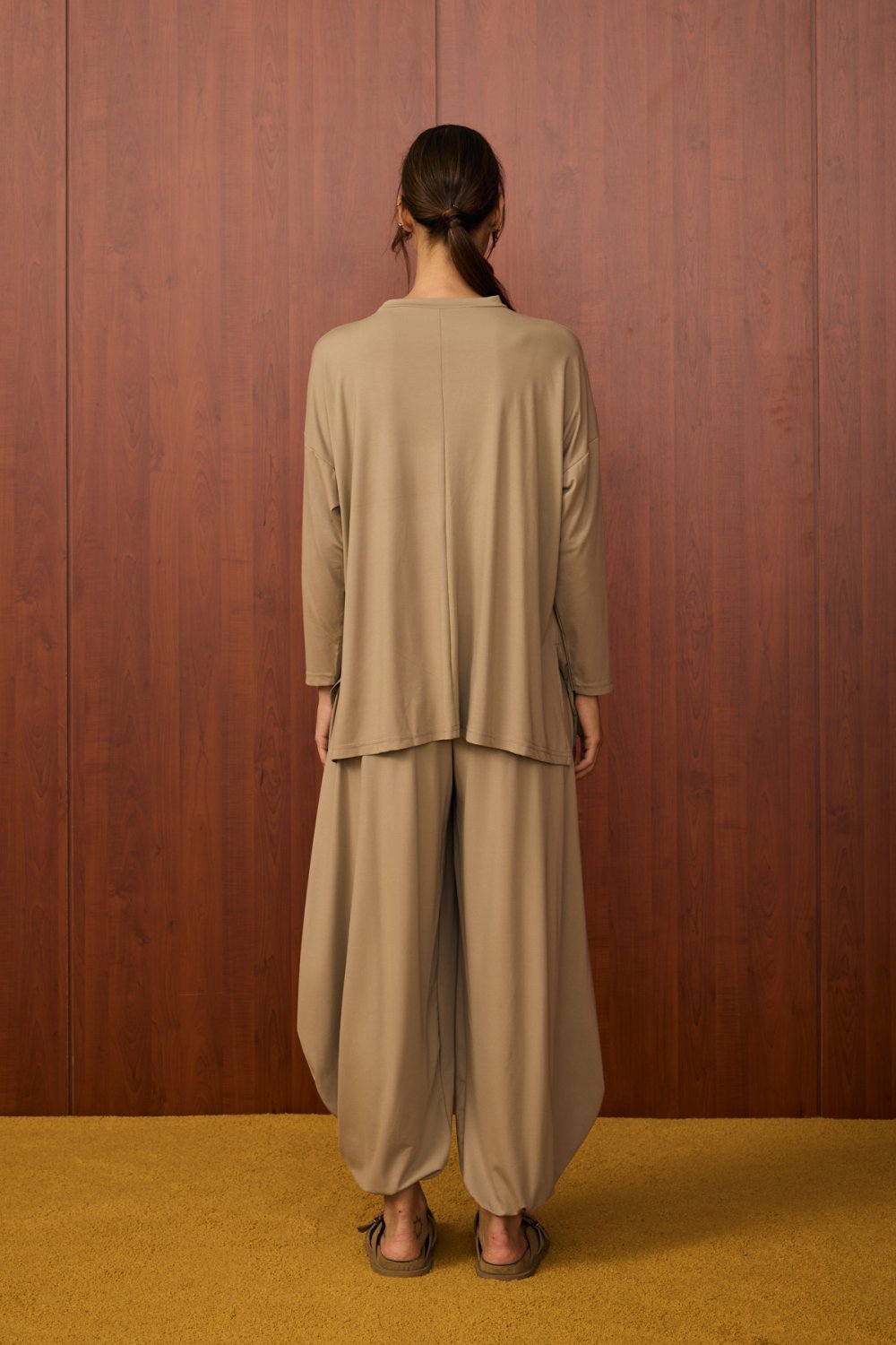 Alt parça bilek kısmı lastikli şalvar kesimdir.