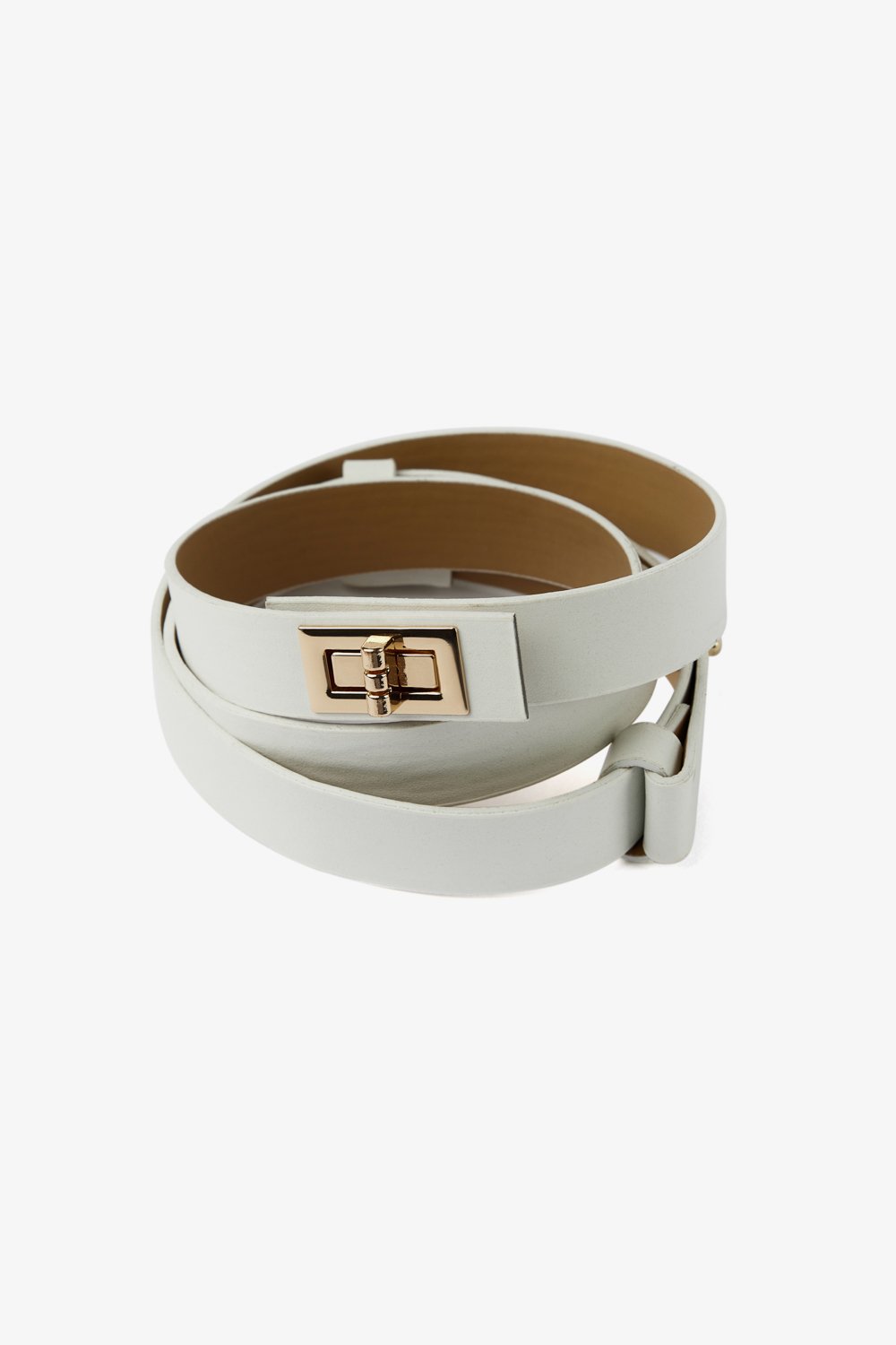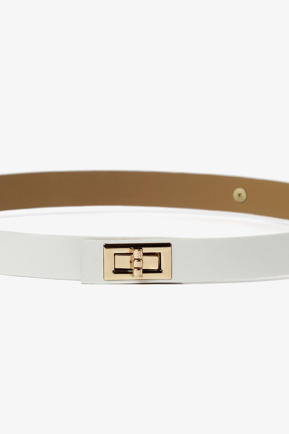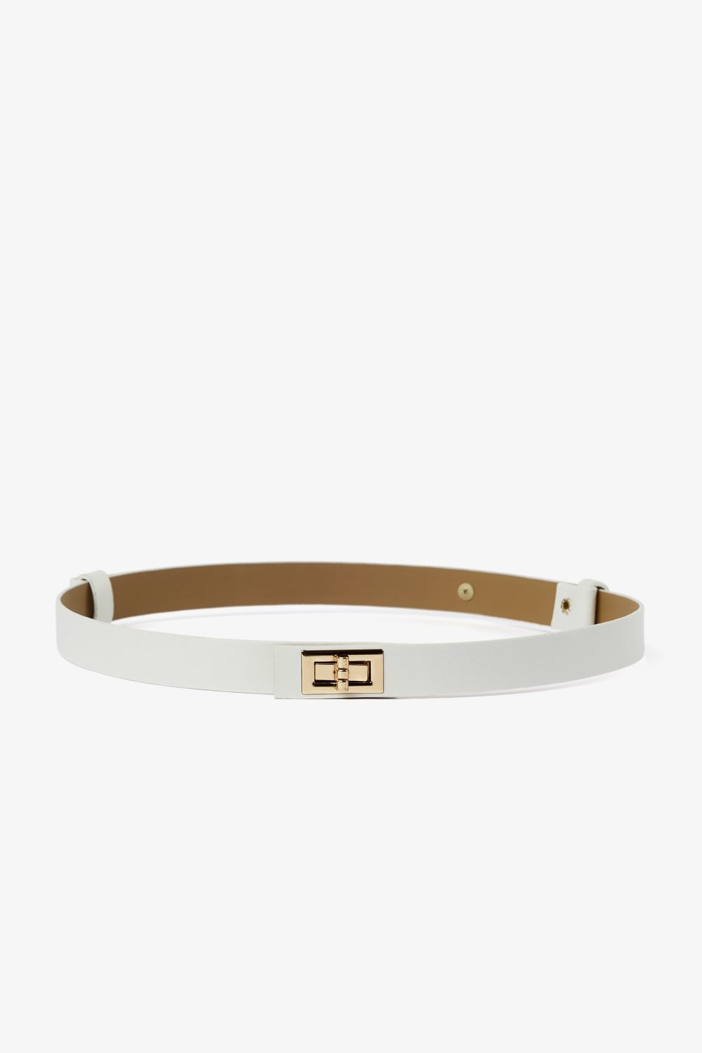 Oval metal tokalı, suni deri kemer.