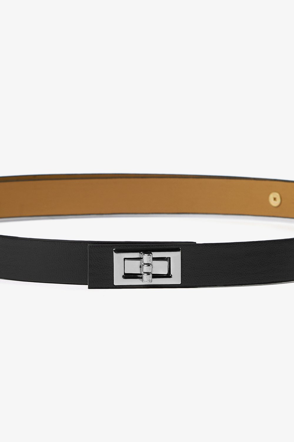 Oval metal tokalı, suni deri kemer.