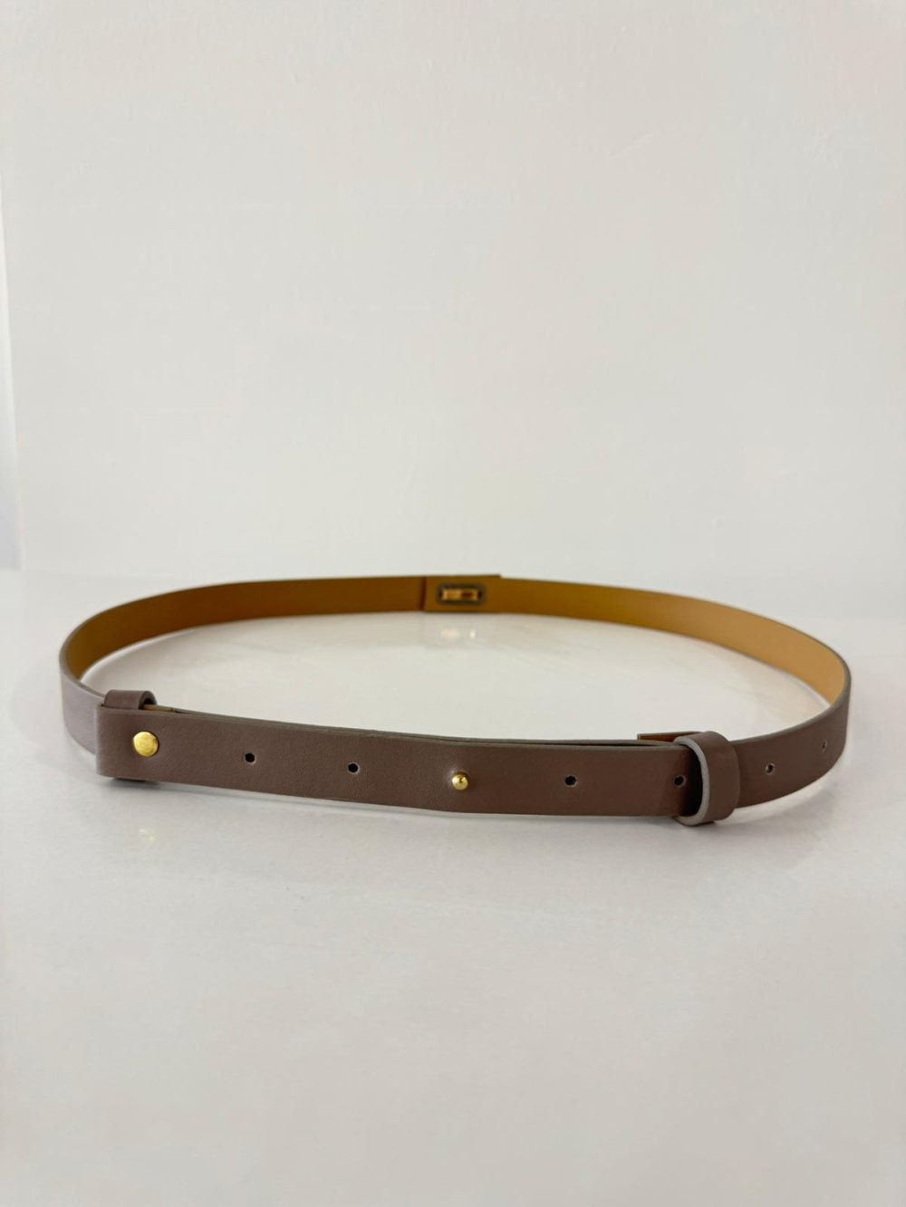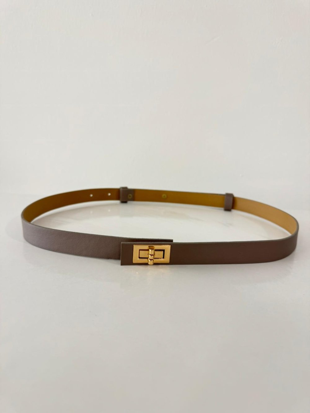 Oval metal tokalı, suni deri kemer.