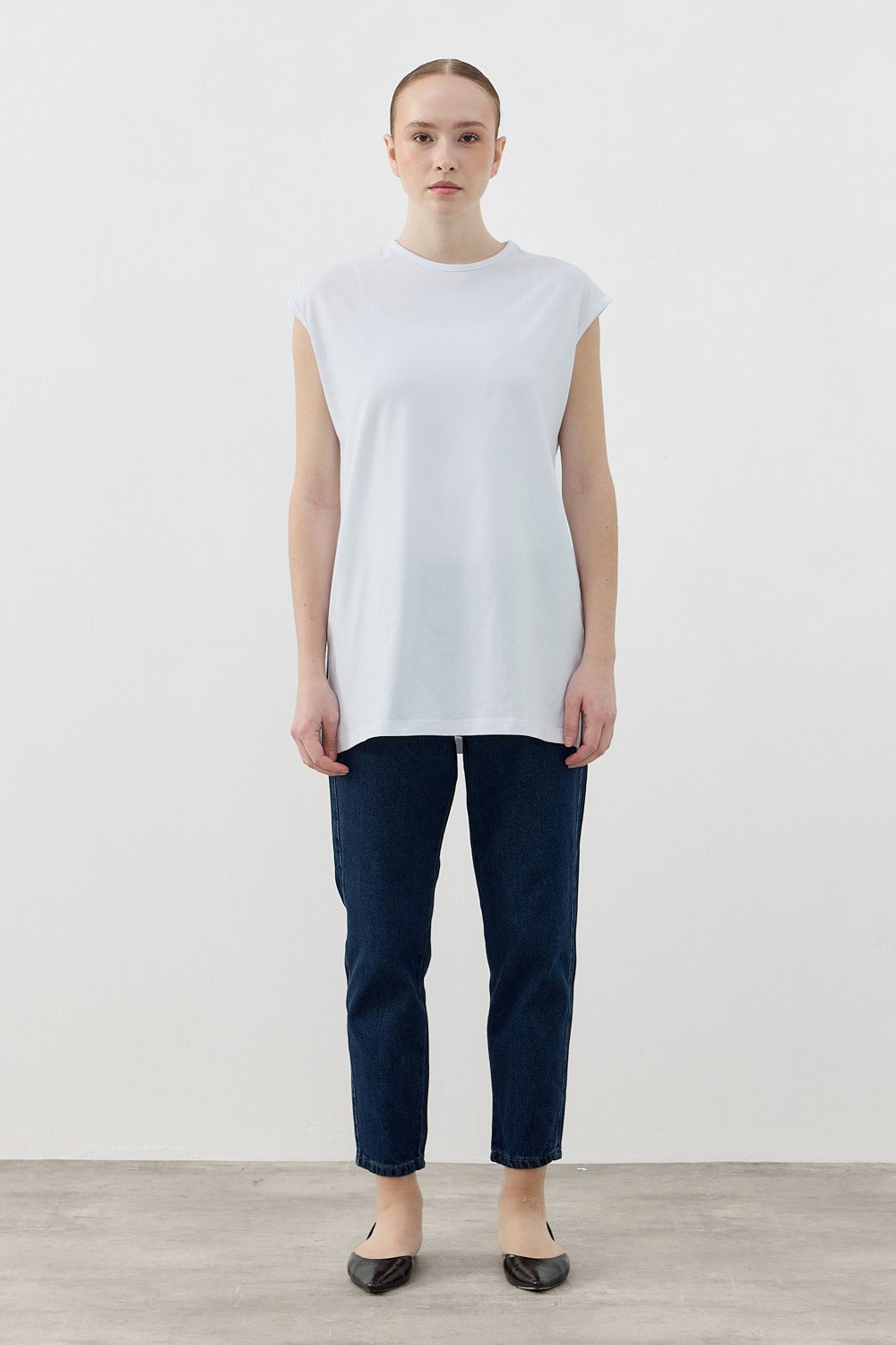 Ürün Açıklaması: Günlük şıklığınızı tamamlayacak bu sade ve zarif tunik, kaliteli penye kumaştan üretilmiştir. Yumuşak dokusu ile gün boyu konfor sunar. Omuzları kaplayan kesimi ve düz kesimiyle minimal bir stil sunarken, beyaz rengiyle her kombine uyum sağlar. Ürünün arkasında ya da bir yerinde MRW logosu yer almaktadır.