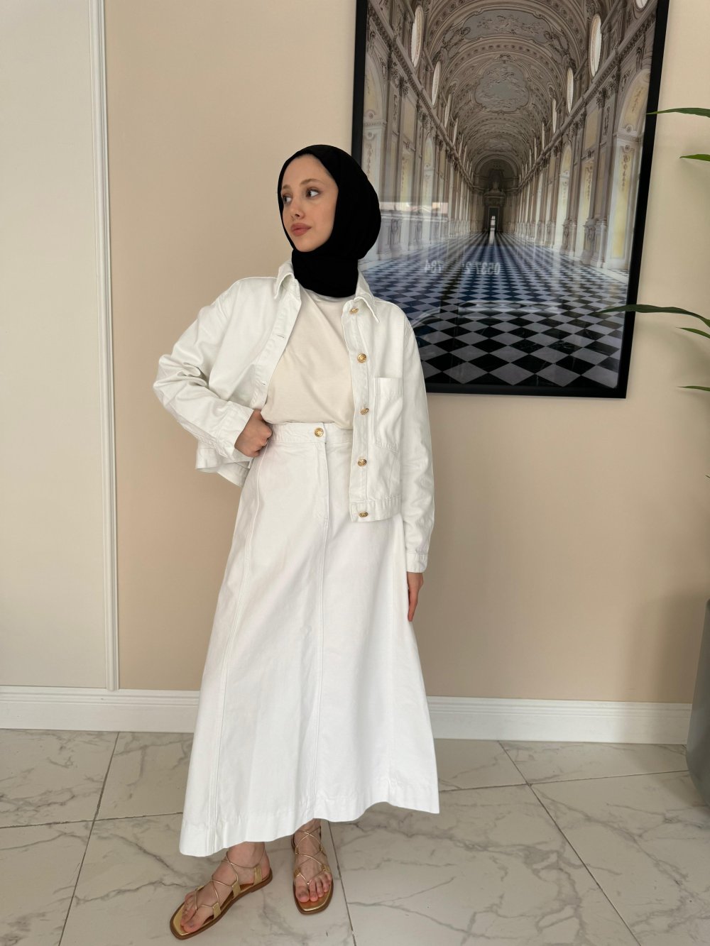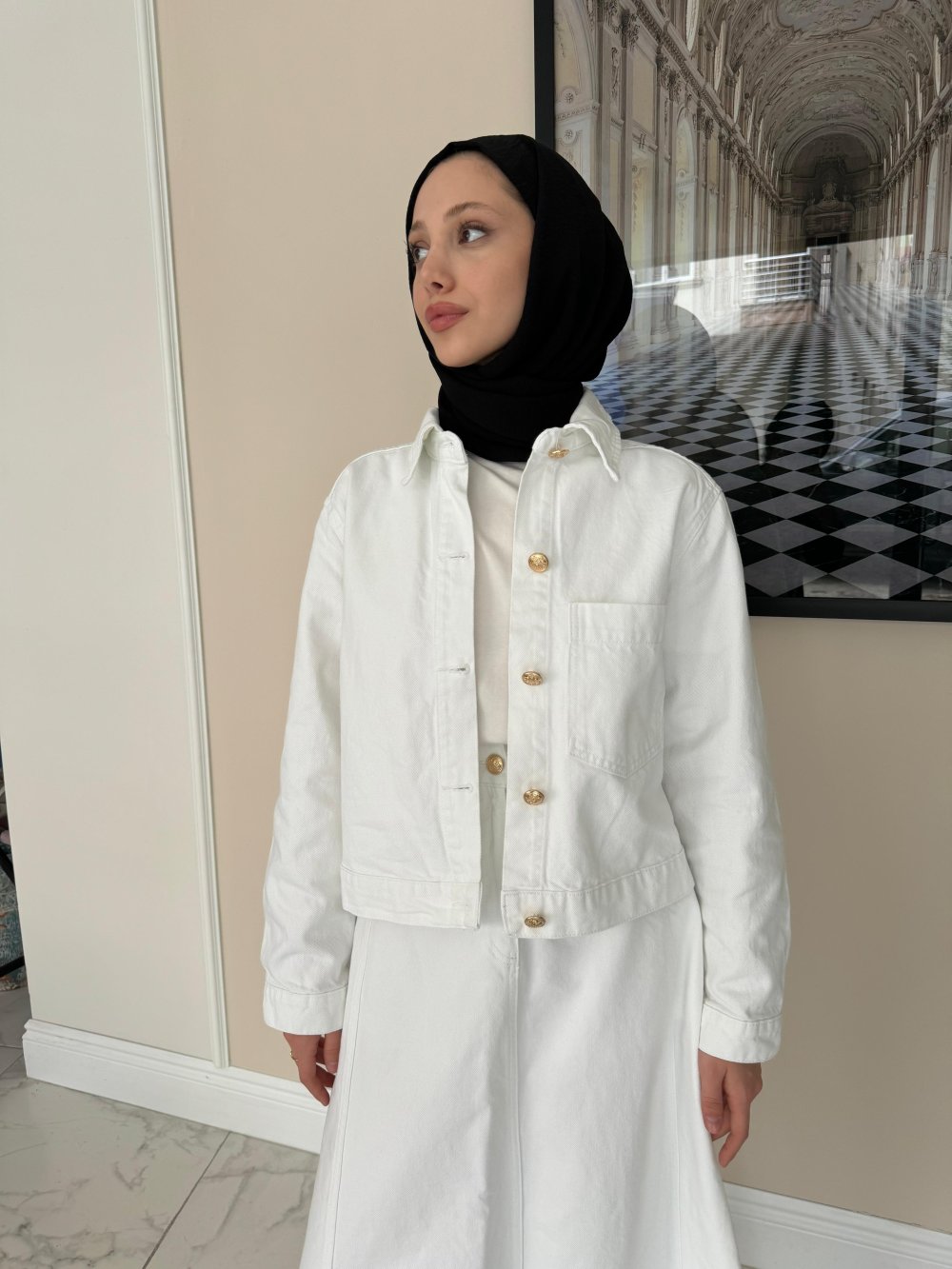 Kot Denim Ceket-Beyaz