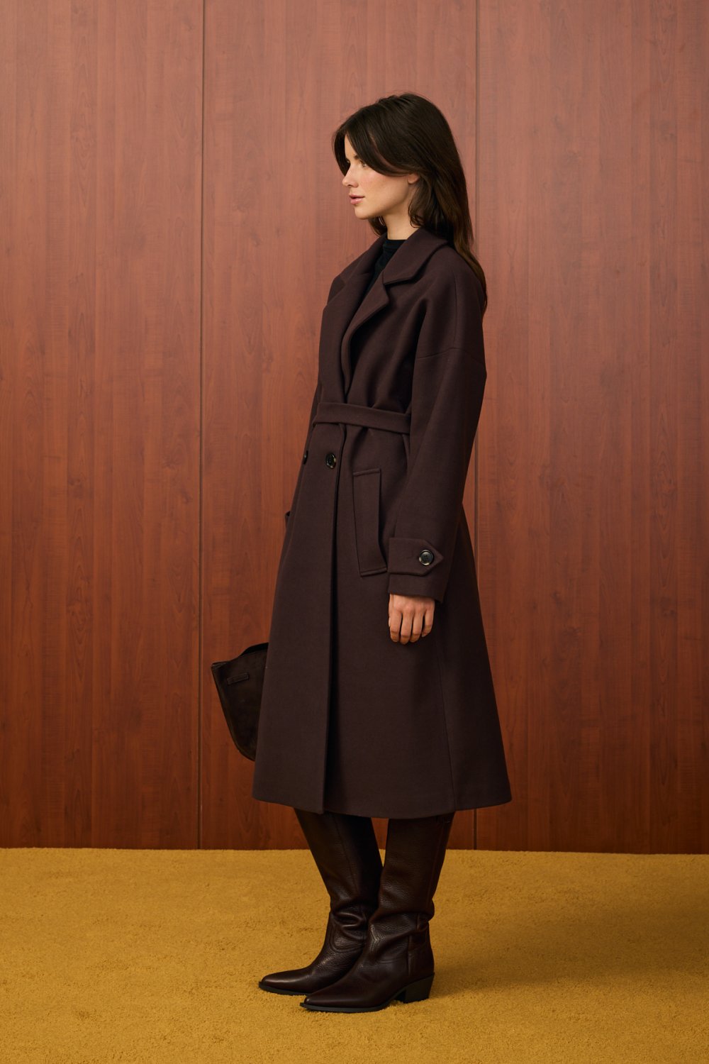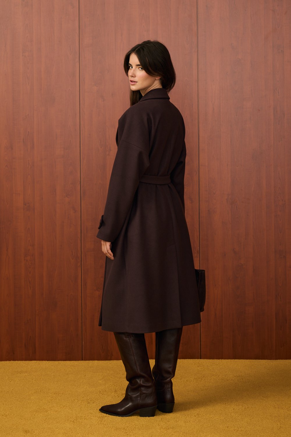 • Model Özelliği: Klasik yaka, kruvaze düğmeli, bele bağlanabilen kaşe kaban. Uzun formu ile hem şık hem de sıcak tutan bir kullanım sunar.