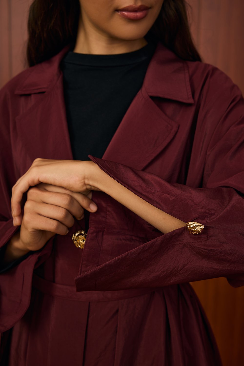 • Model Özelliği: Geniş yaka, tek düğme kapama, bele oturtulabilen kuşaklı tasarım. Salaş duruşuyla modern ve şık bir görünüm sağlar.
