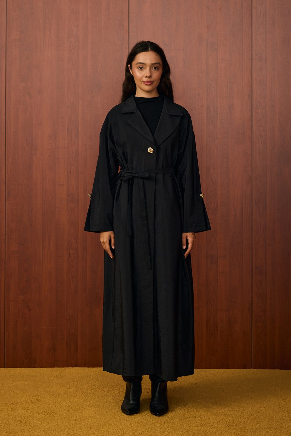 Model Özelliği: Geniş yaka, tek düğme kapama, bele oturtulabilen kuşaklı tasarım. Salaş duruşuyla modern ve şık bir görünüm sağlar.