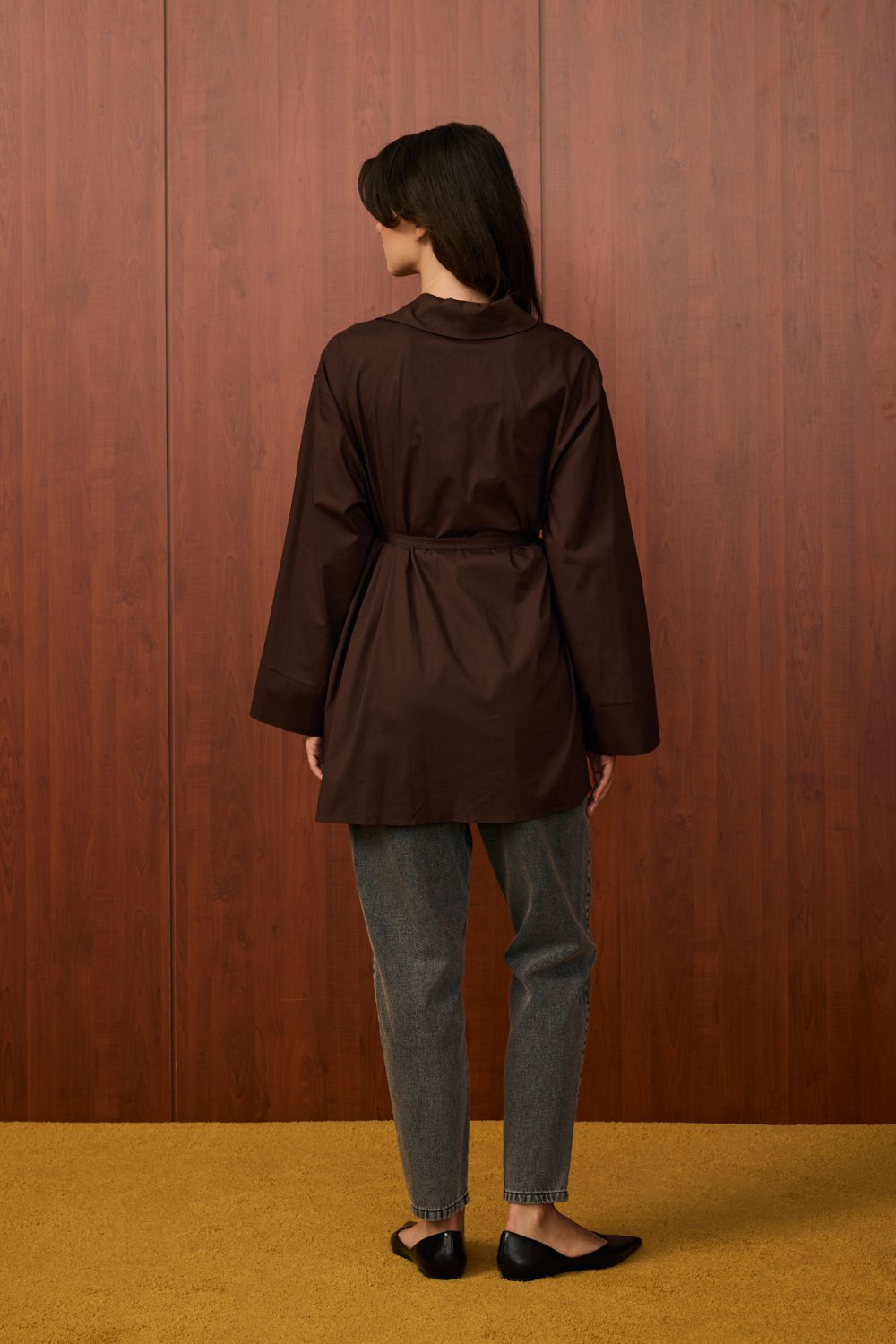 • Model Detayı: Düz kesim, kuşaklı, uzun kollu gömlek tasarımı. Geniş yaka detayı ve bele oturtulabilen kuşak ile şık ve modern bir görünüm sunar.