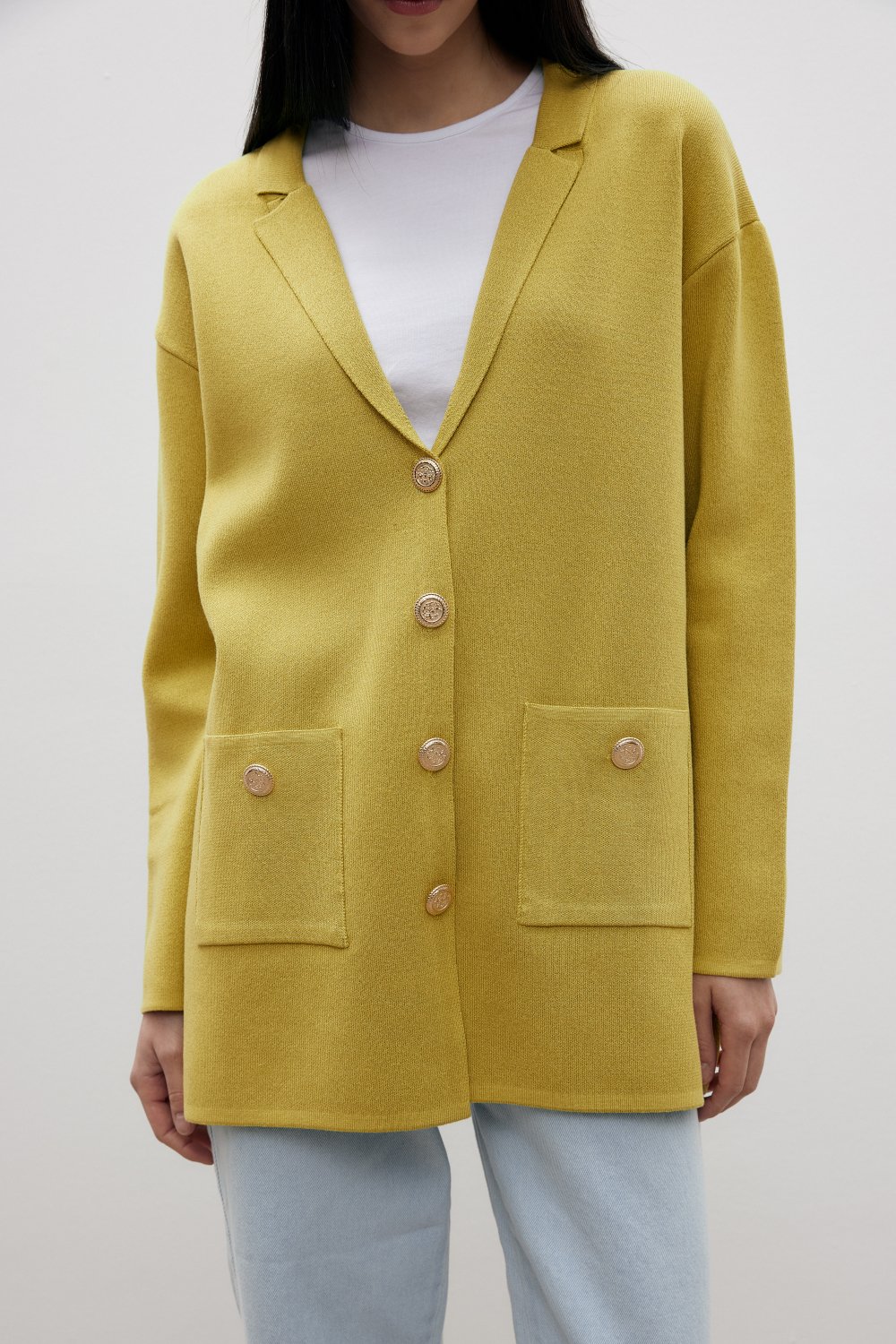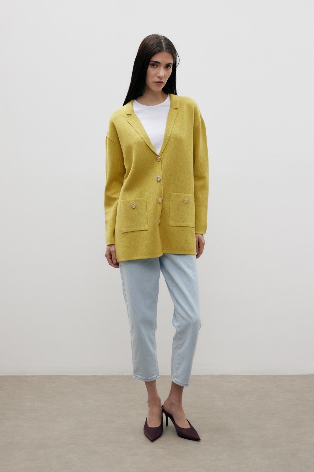 Ürün Özeti: Yumuşak ve kaliteli pamuk iplikten üretilmiş bu şık triko ceket, hem şıklık hem de konforu bir arada sunar. Günlük kullanıma uygun olan bu ceket, 75 cm uzunluğu ve modern kesimi ile tarzınıza zarif bir dokunuş katar. Cep detayları ve düğmeleri ile de fonksiyonel ve şık bir görünüme sahiptir.
