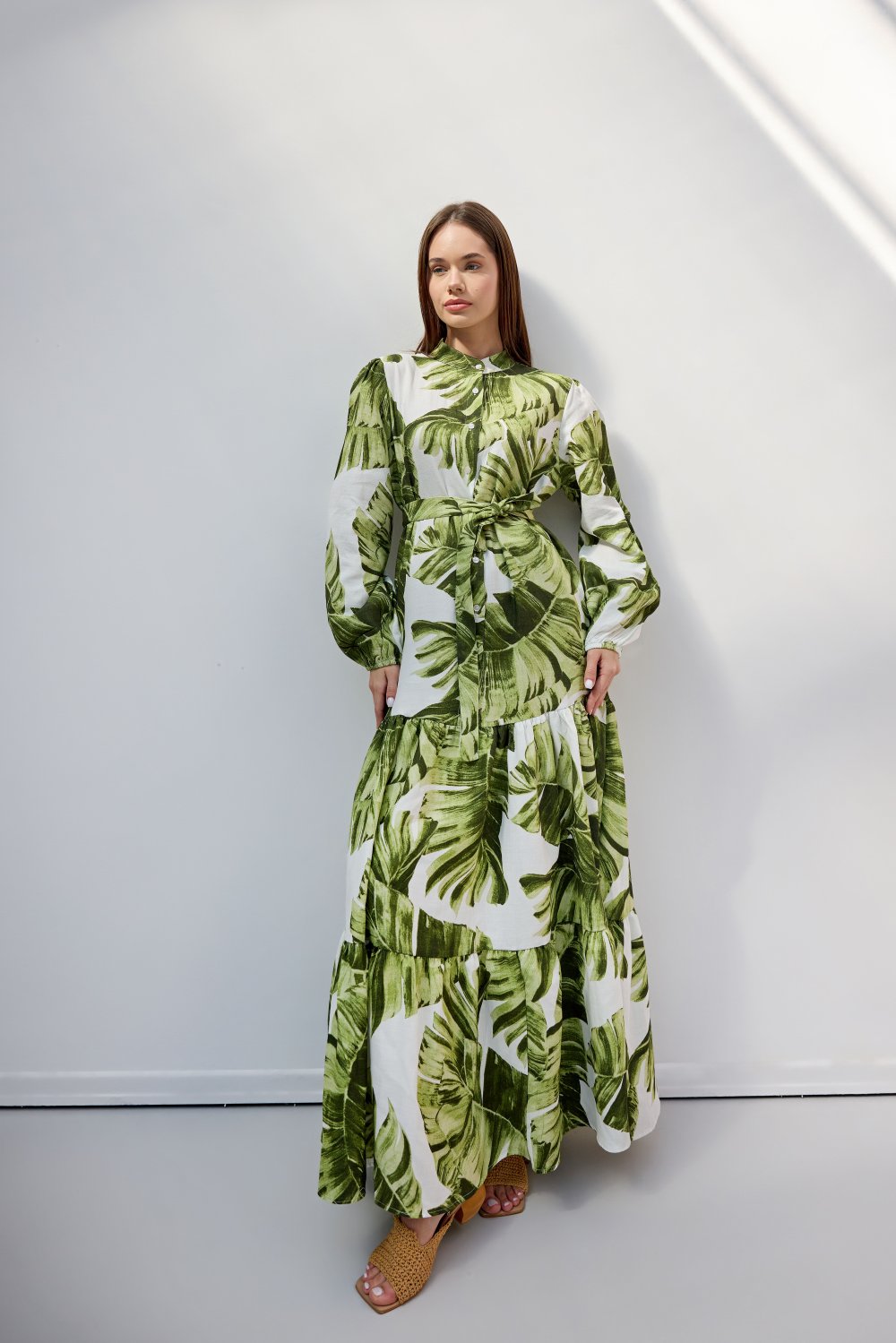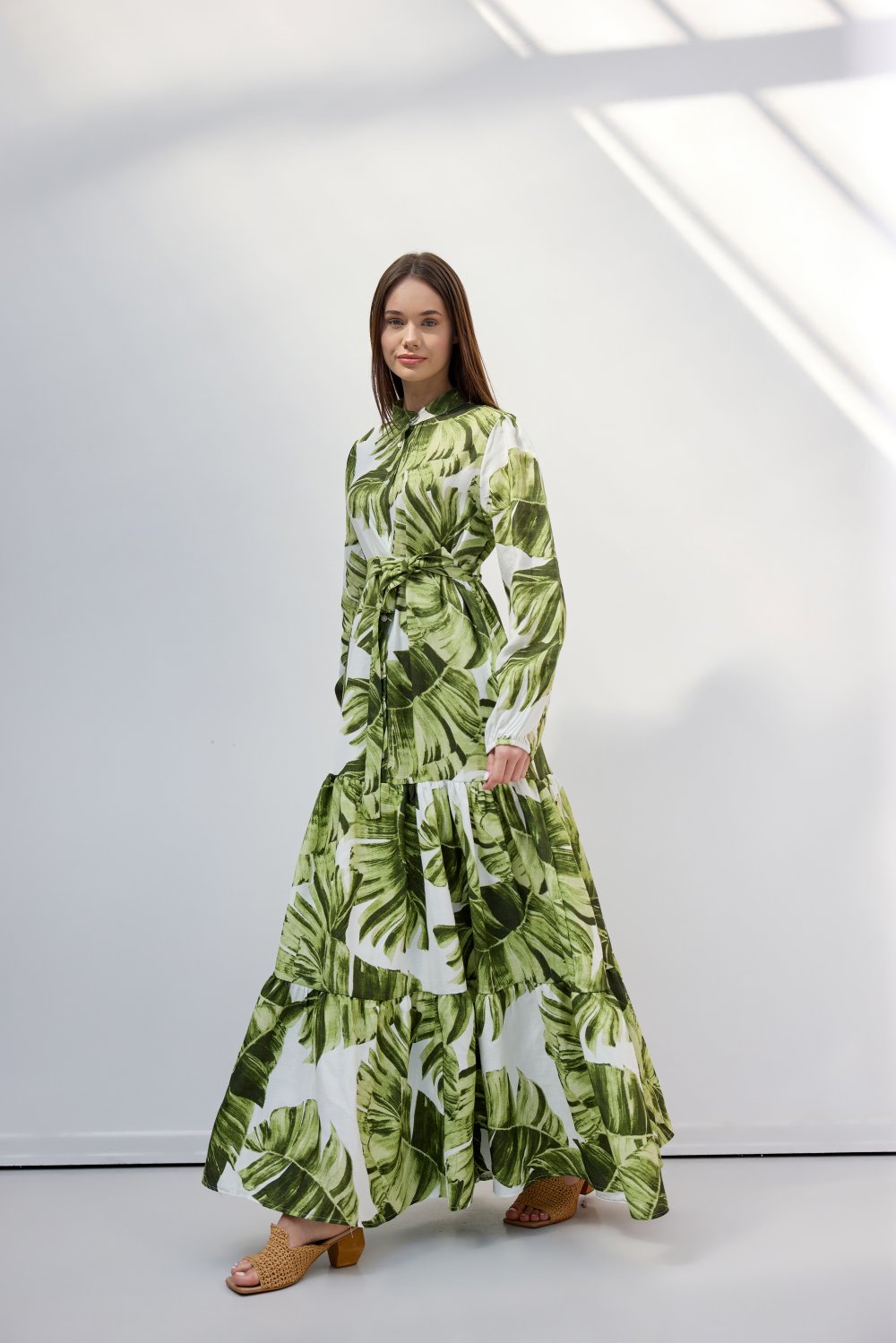 %100 pamuktan üretilen bu organik pamuk maxi elbise, hafif ve nefes alabilir yapısıyla konforlu bir kullanım sunar. Doğal tonlardaki zarif desenleri ve bel kısmındaki çıkarılabilir kemeri sayesinde hem rahat hem de şık bir görünüm elde edebilirsiniz. Günlük kullanımdan özel davetlere kadar her ortamda rahatlıkla tercih edilebilecek bu model, yumuşak dokusuyla cildinizde doğal bir his bırakır.