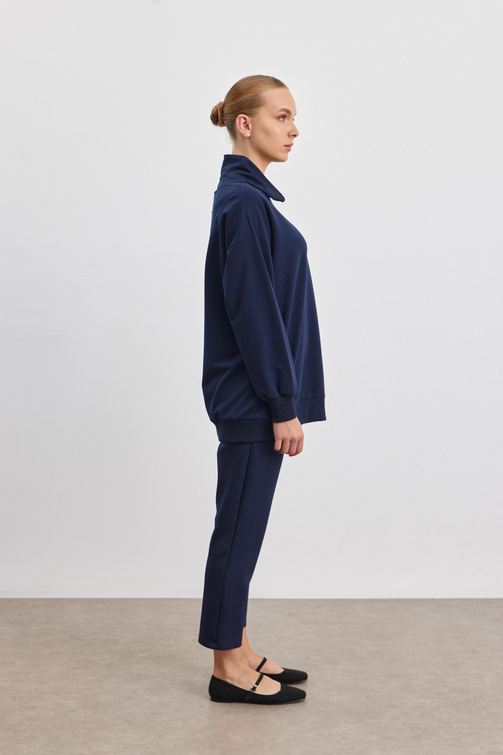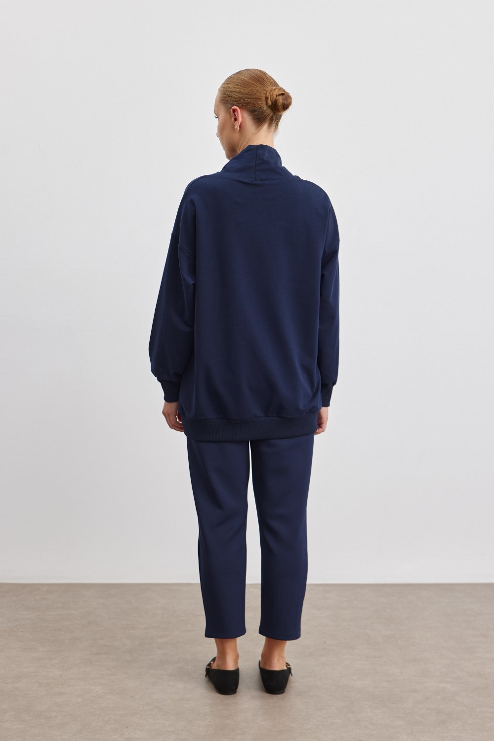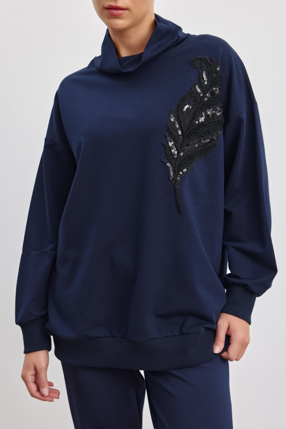 Ürün Açıklaması: Bu zarif siyah boğazlı sweatshirt, üzerinde yer alan detaylı nakış işleme ile şıklığı ve konforu bir arada sunuyor. İki iplik kumaştan üretilmiş bu sweatshirt, 73 cm uzunluğunda olup, yumuşak dokusu ve rahat kesimiyle günlük giyim için idealdir. Sweatshirt ün sade tasarımı, göğüs kısmındaki zarif nakış detaylarıyla hareketlendirilmiştir. Siyah pantolon ile mükemmel uyum sağlayarak, şık ve modern bir görünüm yaratır.