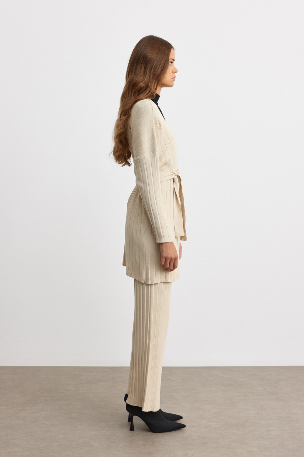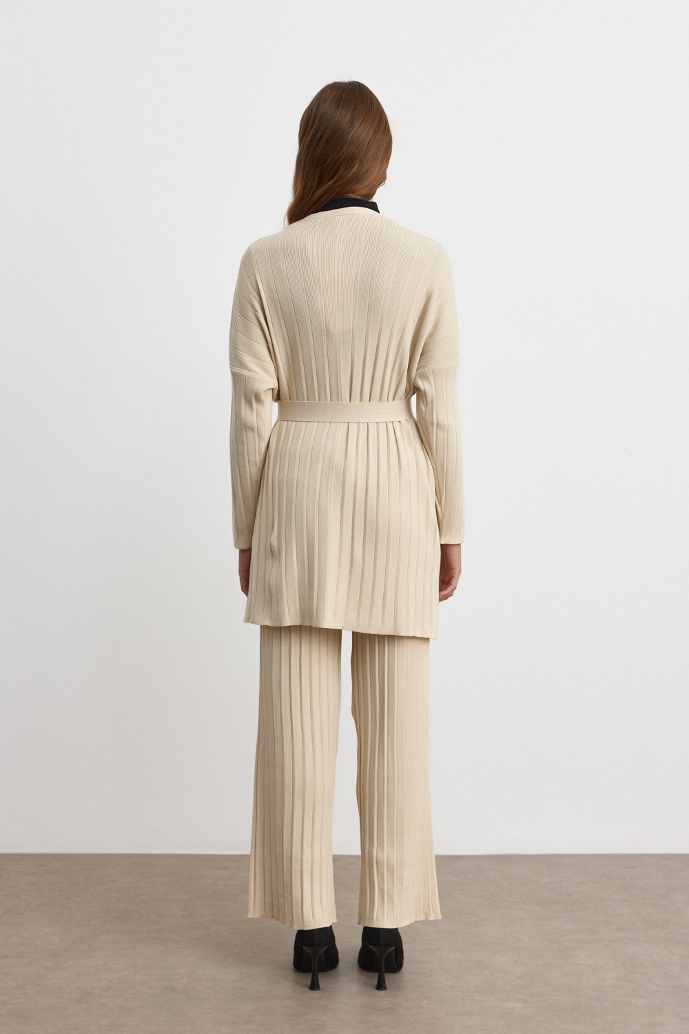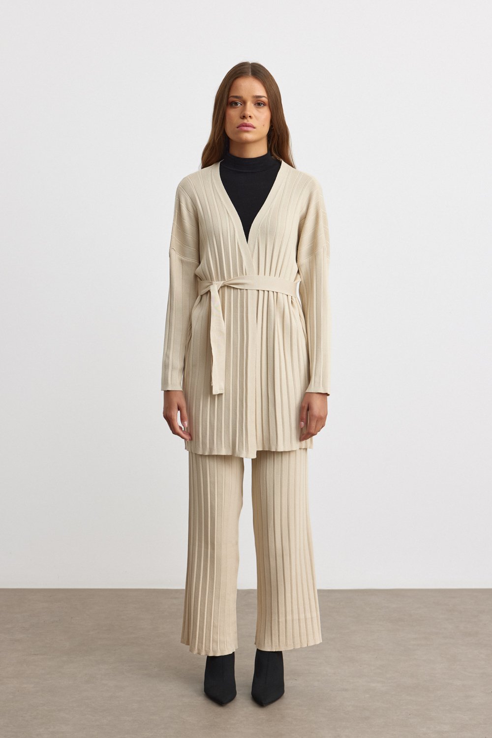 Gardırobunuza modern bir dokunuş katacak bu kuşaklı hırka takım ile her daim şık ve rahat hissedeceksiniz!