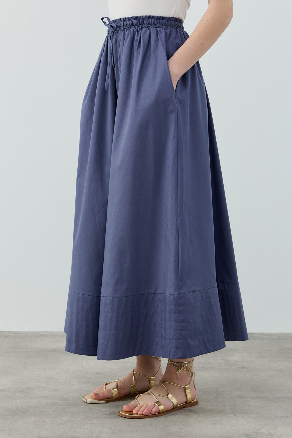 New Poplin Etek-İndigo