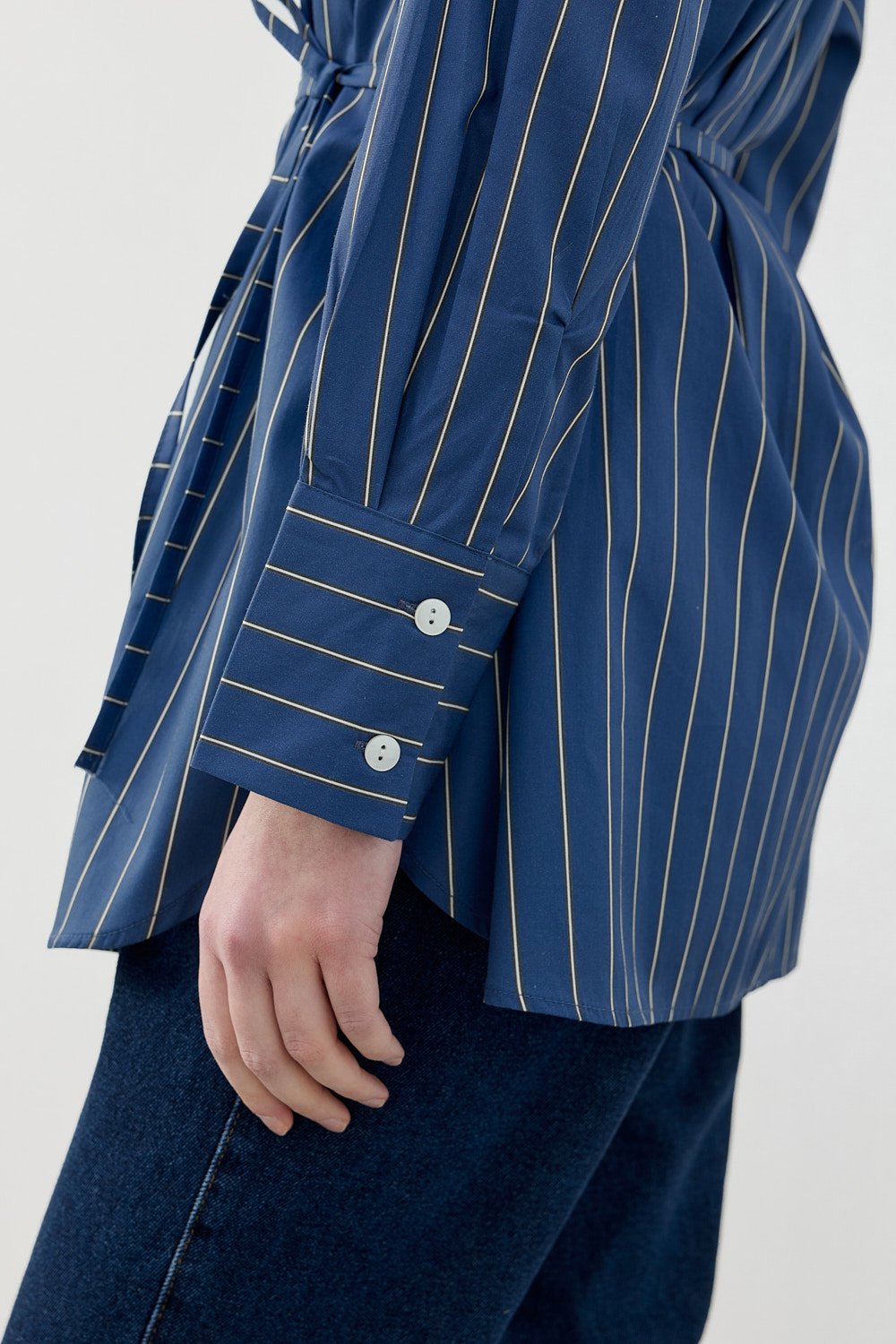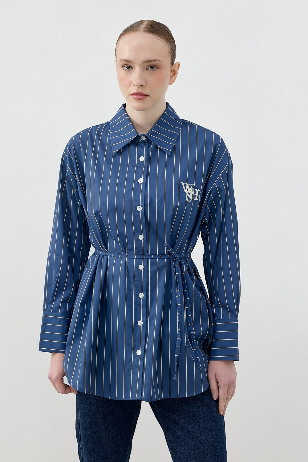 Şıklığı ve rahatlığı bir araya getiren Kadın Poplin   Gömlek, klasik çizgili deseni ve ince detaylarıyla dikkat çekiyor.konfor sunar. Bel kısmındaki kuşak detayı ile vücuda oturan zarif bir siluet oluşturur. Günlük kombinlerden ofis şıklığına kadar farklı tarzlarla uyum sağlayan bu model, dolabınızın vazgeçilmez parçalarından biri olmaya aday!