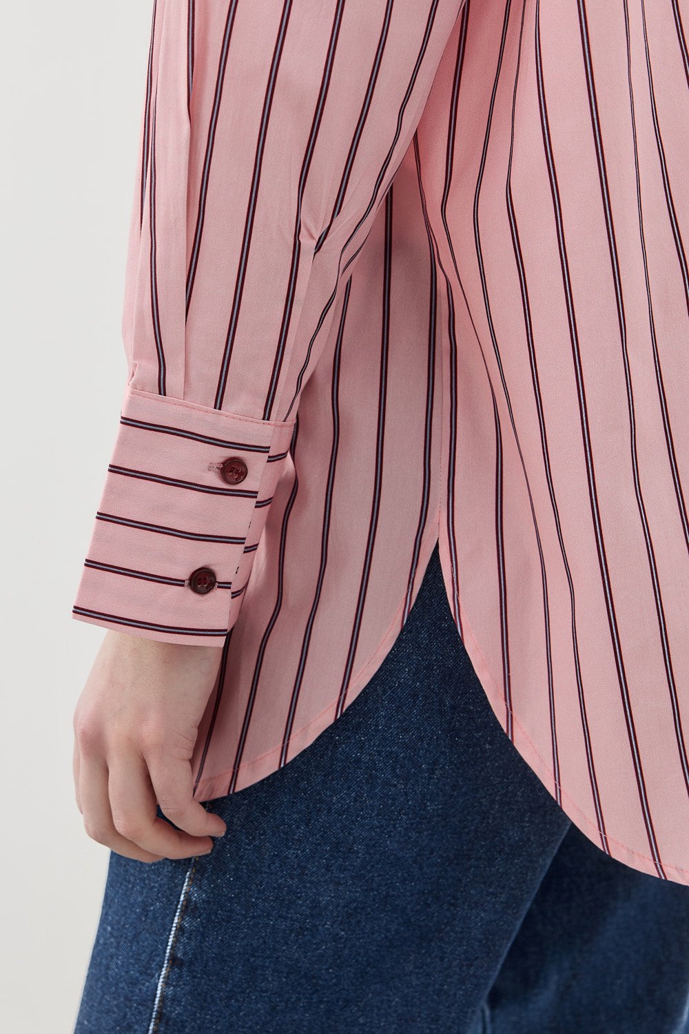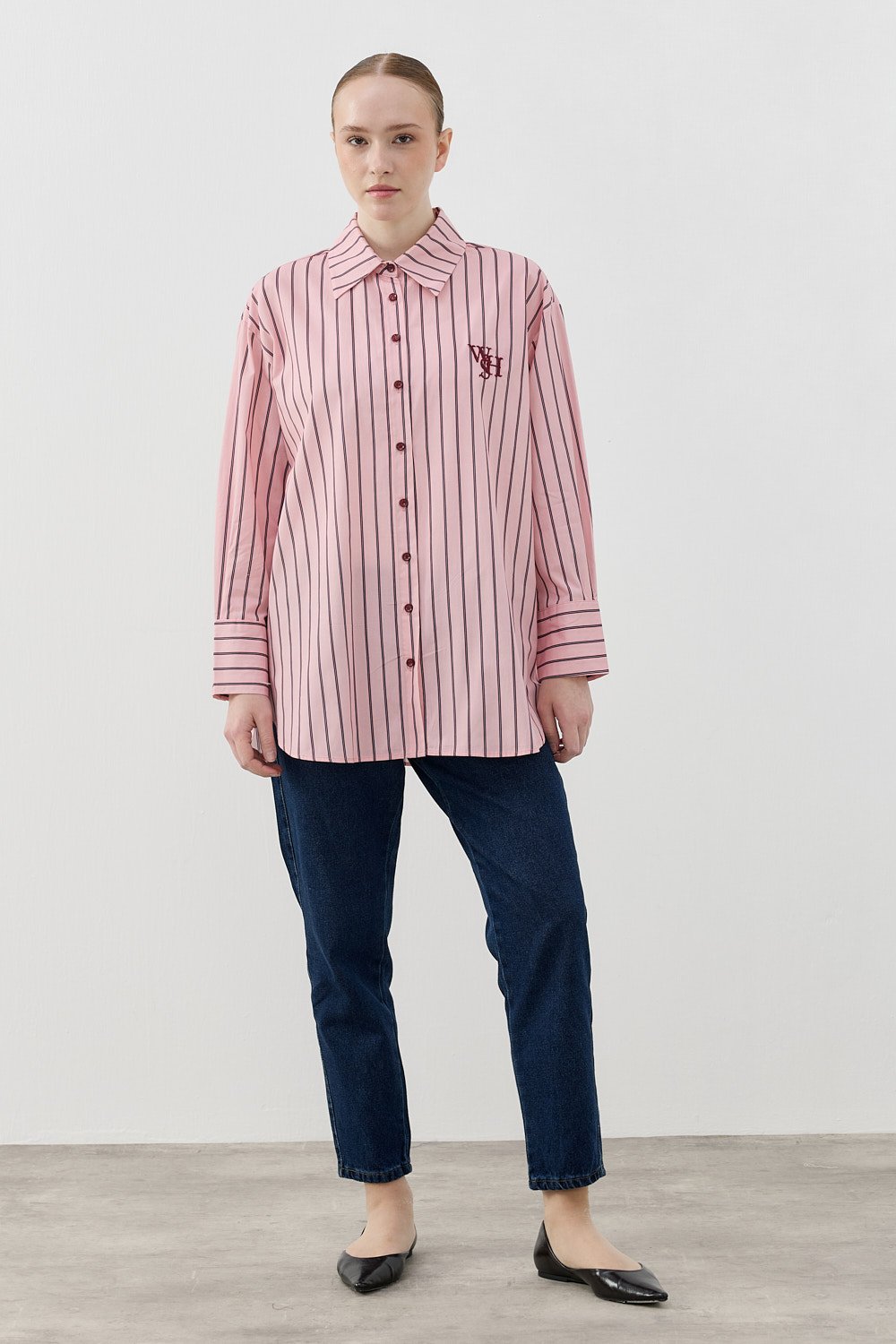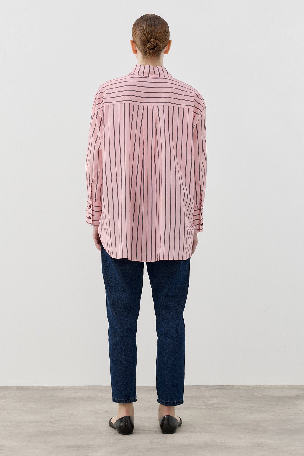 Şıklığı ve rahatlığı bir araya getiren Kadın Poplin   Gömlek, klasik çizgili deseni ve ince detaylarıyla dikkat çekiyor.konfor sunar. Bel kısmındaki kuşak detayı ile vücuda oturan zarif bir siluet oluşturur. Günlük kombinlerden ofis şıklığına kadar farklı tarzlarla uyum sağlayan bu model, dolabınızın vazgeçilmez parçalarından biri olmaya aday!