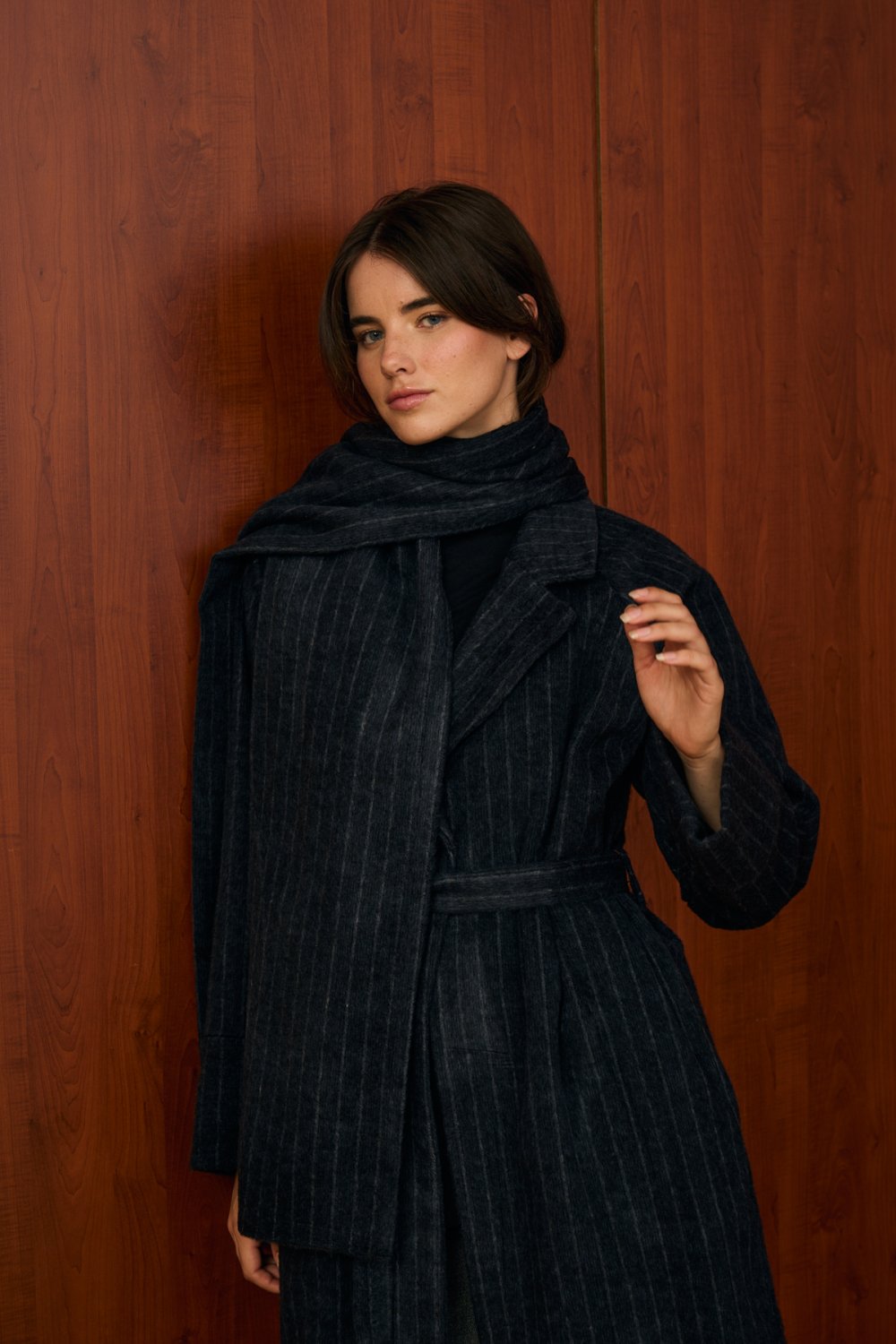 • Renk: Koyu antrasit gri (ince çizgili desenli)