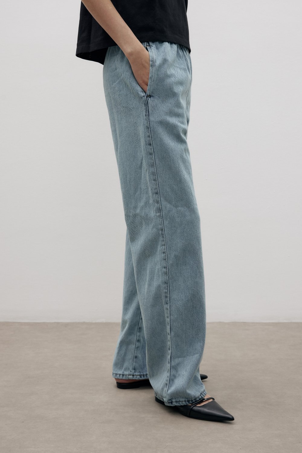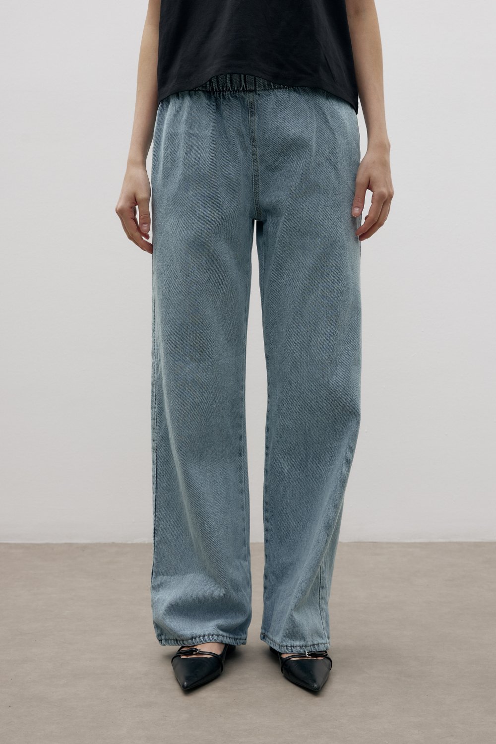 Beli Lastikli Bol Paça Denim Pantolon - Rahat ve Şık Tasarım