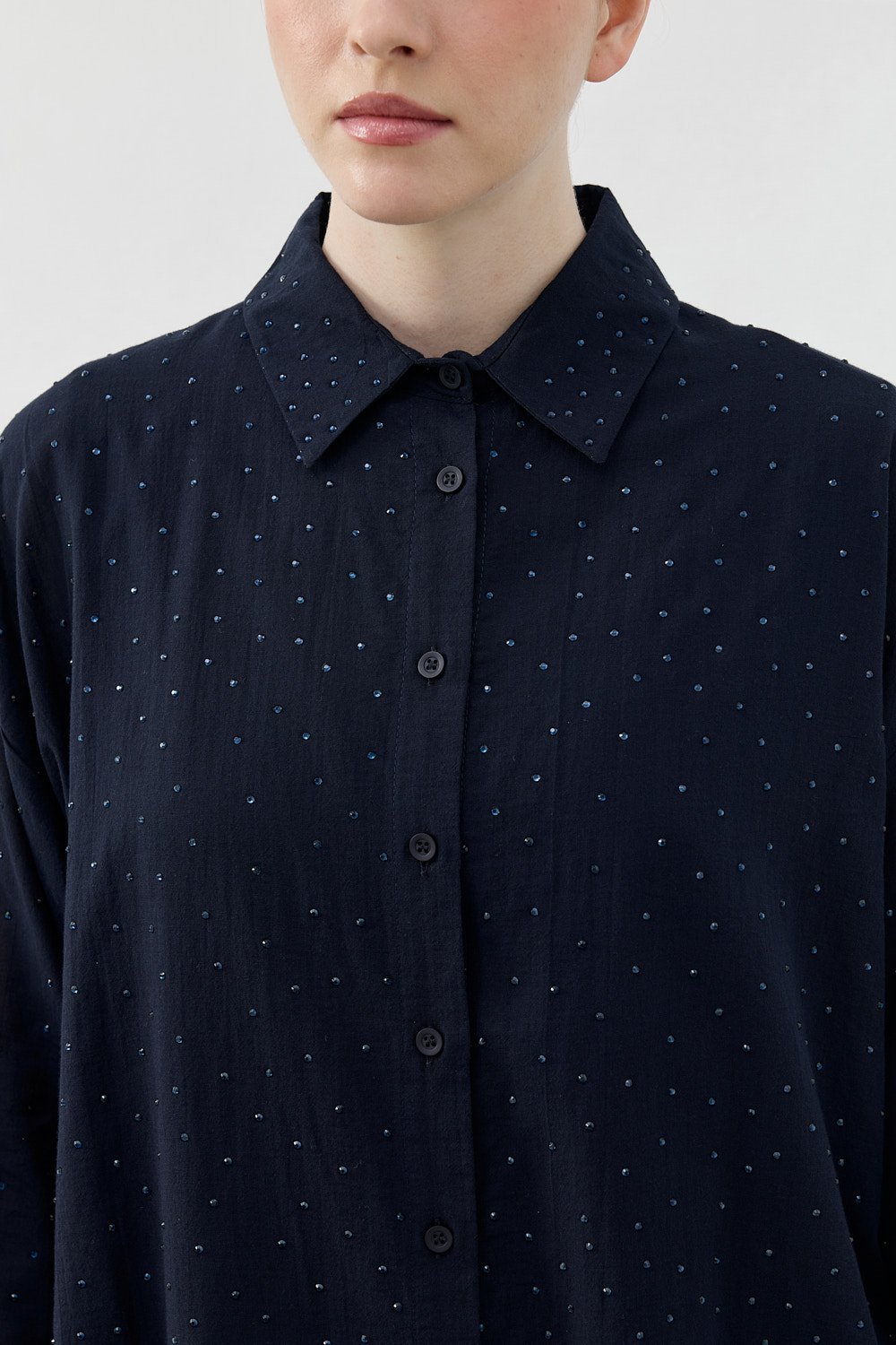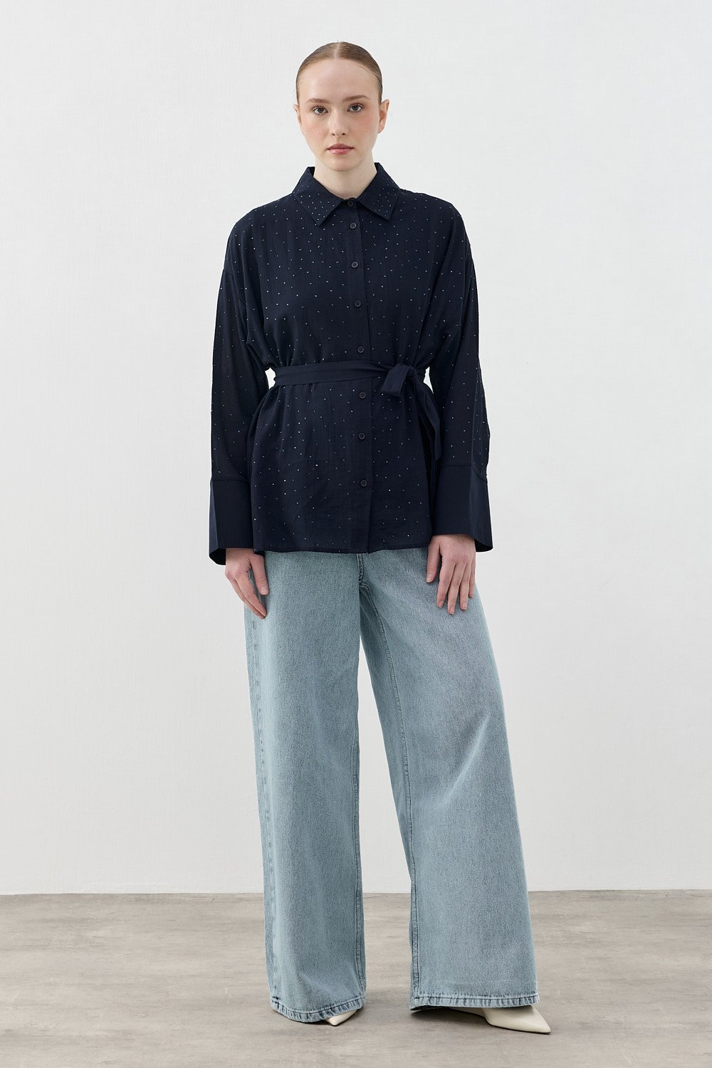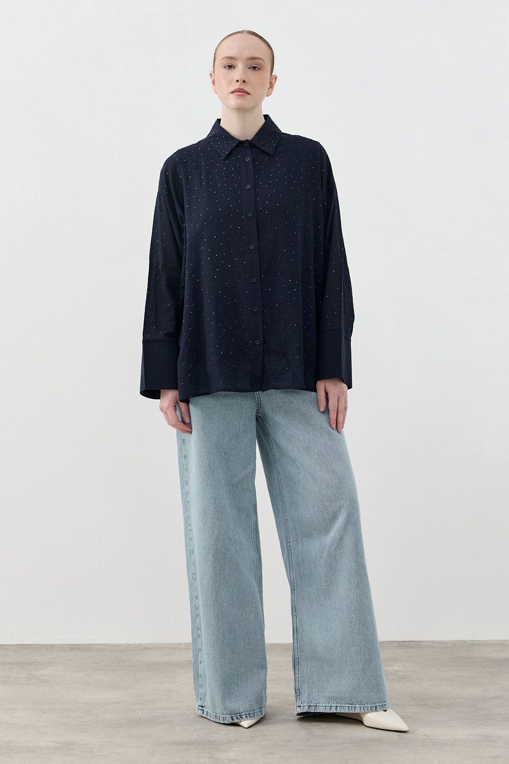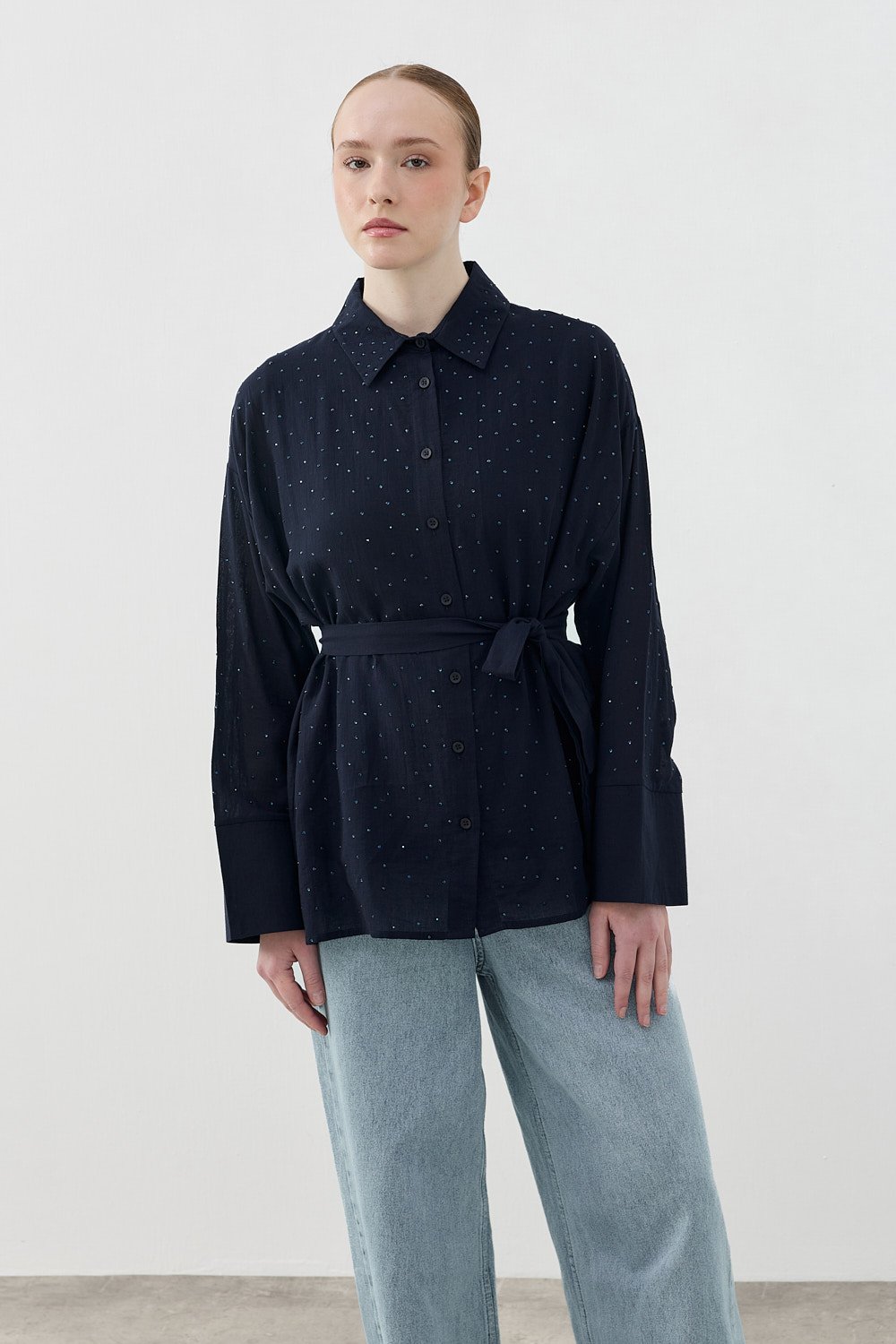Pamuk Taşlı Gömlek-Lacivert