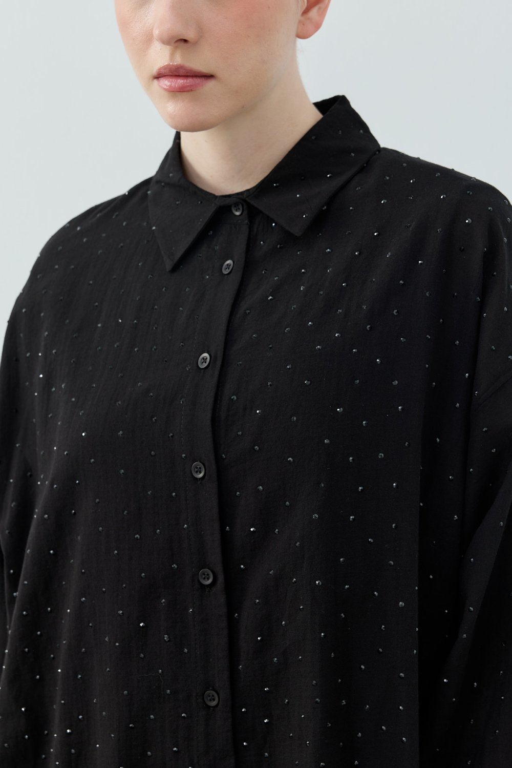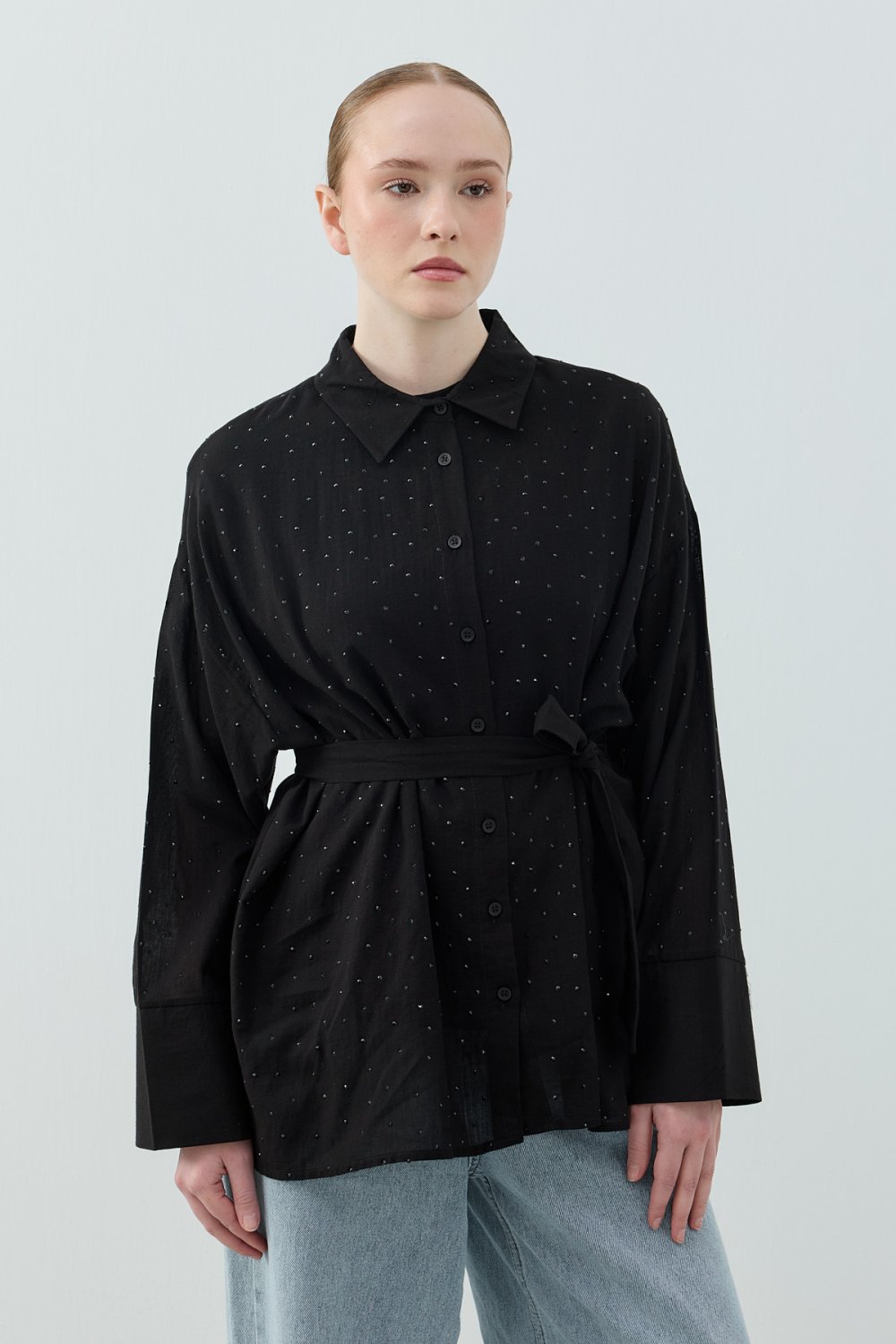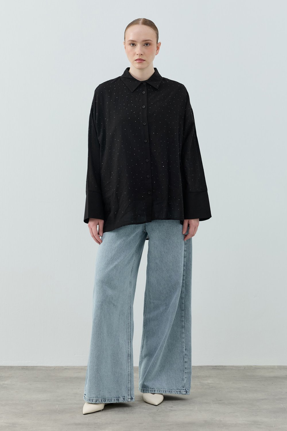 Taş Detaylı Keten Pamuk Gömlek - Şıklık ve Doğal Dokunuş