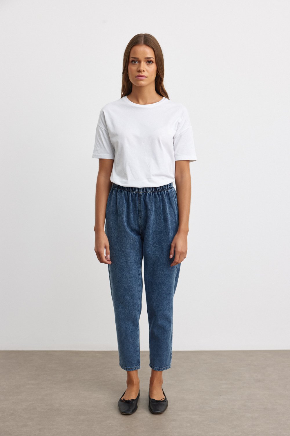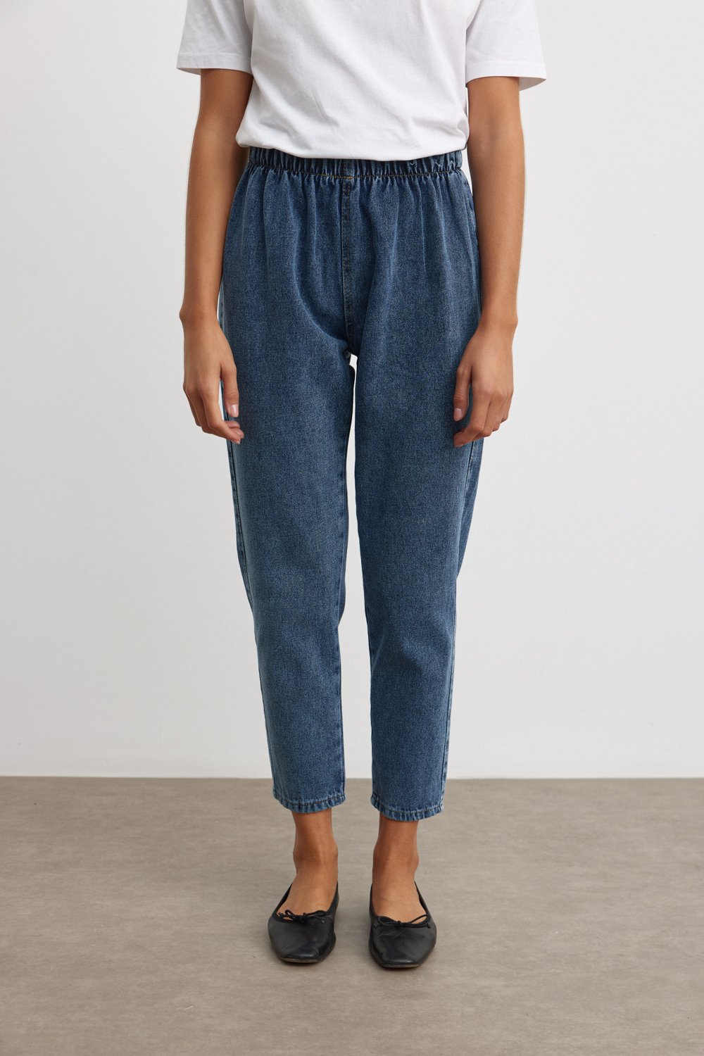 Bu şık ve rahat beli lastikli denim pantolon, günlük stilinize modern ve konforlu bir dokunuş katmak için mükemmel bir seçimdir. Yumuşak kot kumaşı ve zarif düğme detayları, bu pantolonu hem şık hem de pratik bir seçenek haline getirir.
