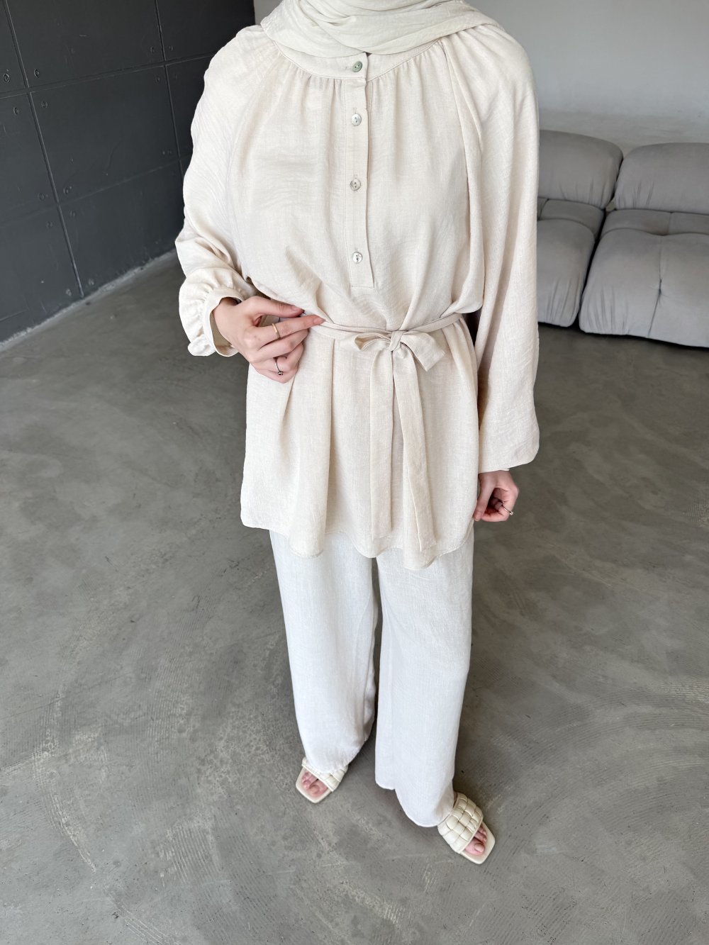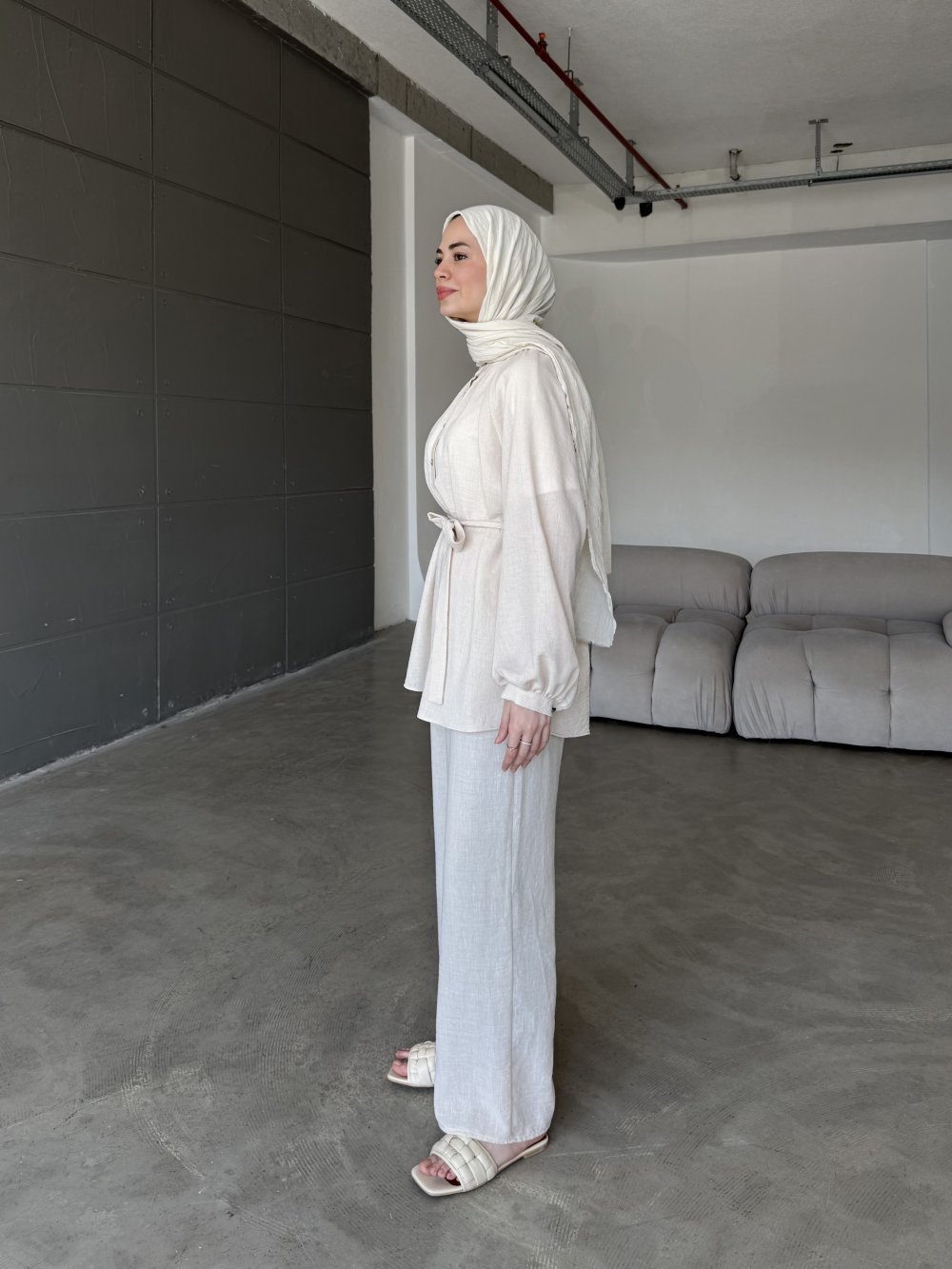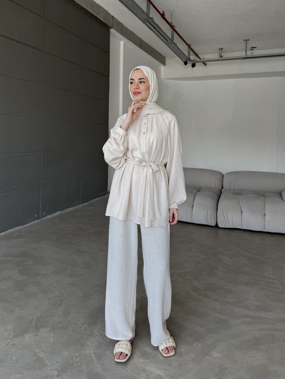 • Model Detayı: Rahat kesim, bol paça pantolon ve tunik uyumu
