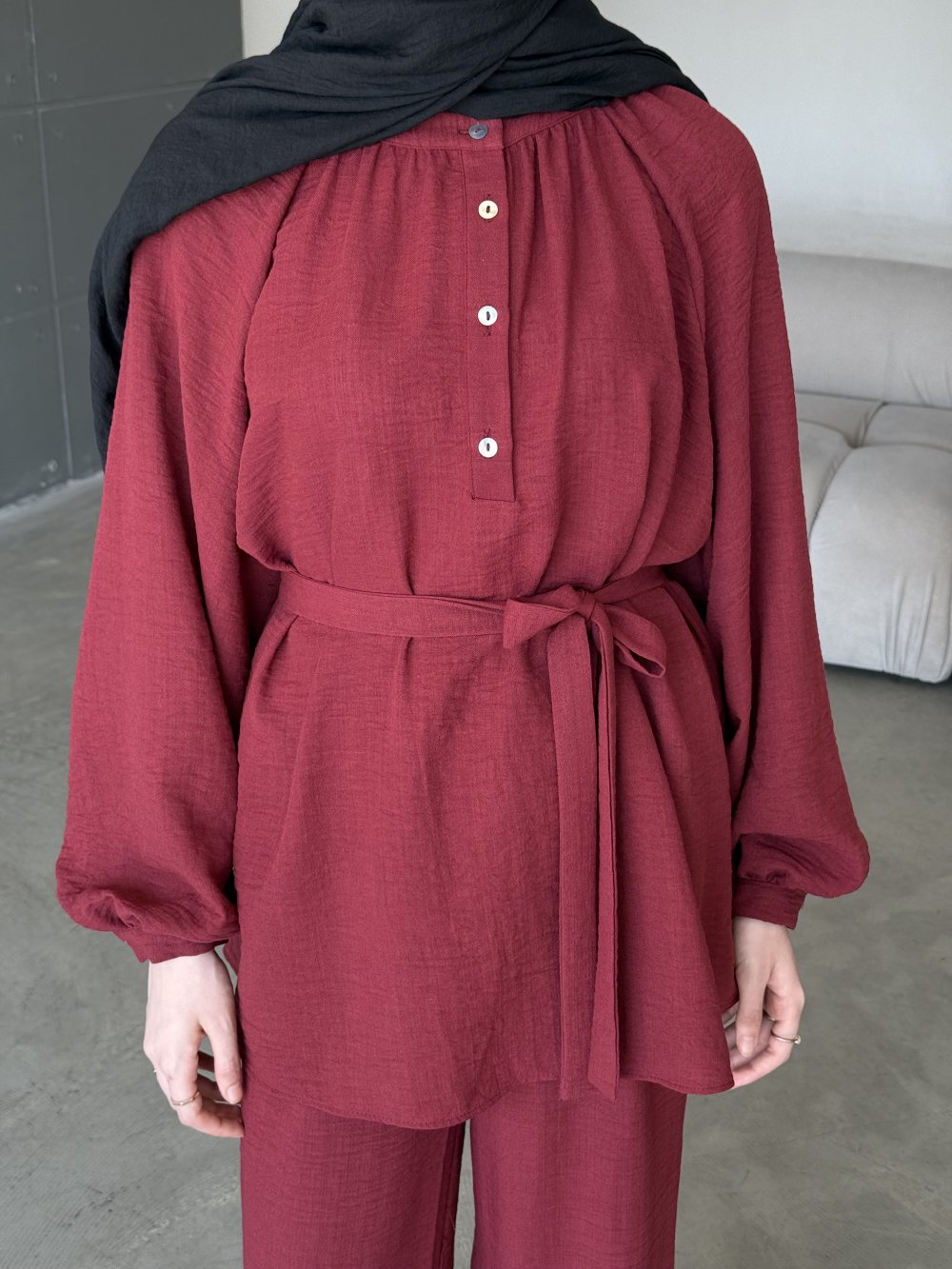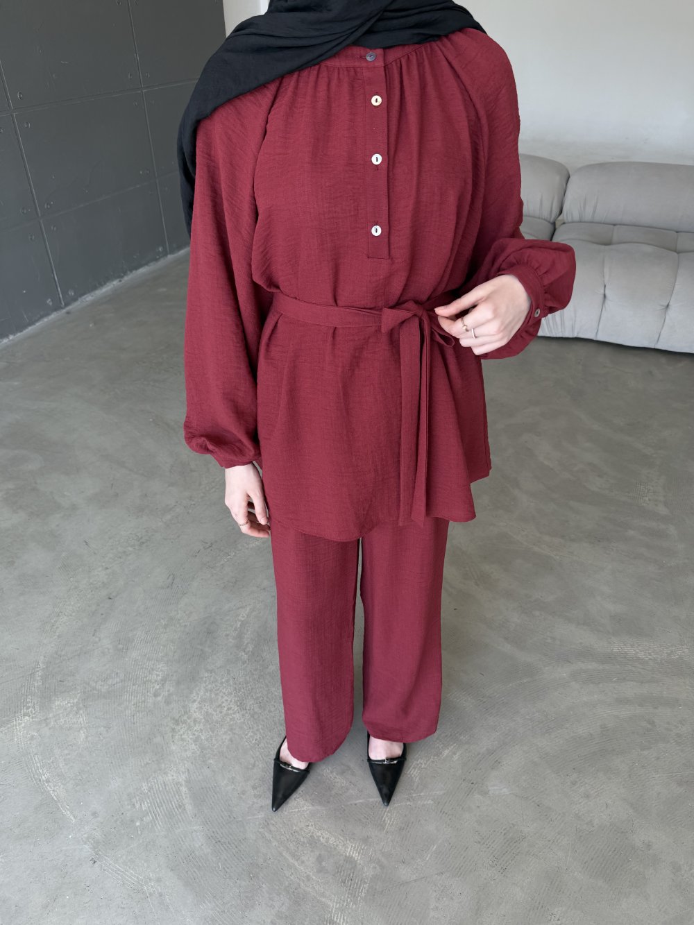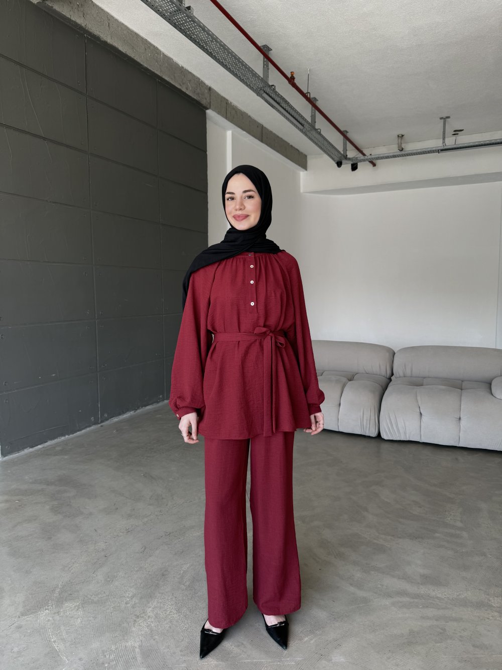 • Model Detayı: Rahat kesim, bol paça pantolon ve tunik uyumu