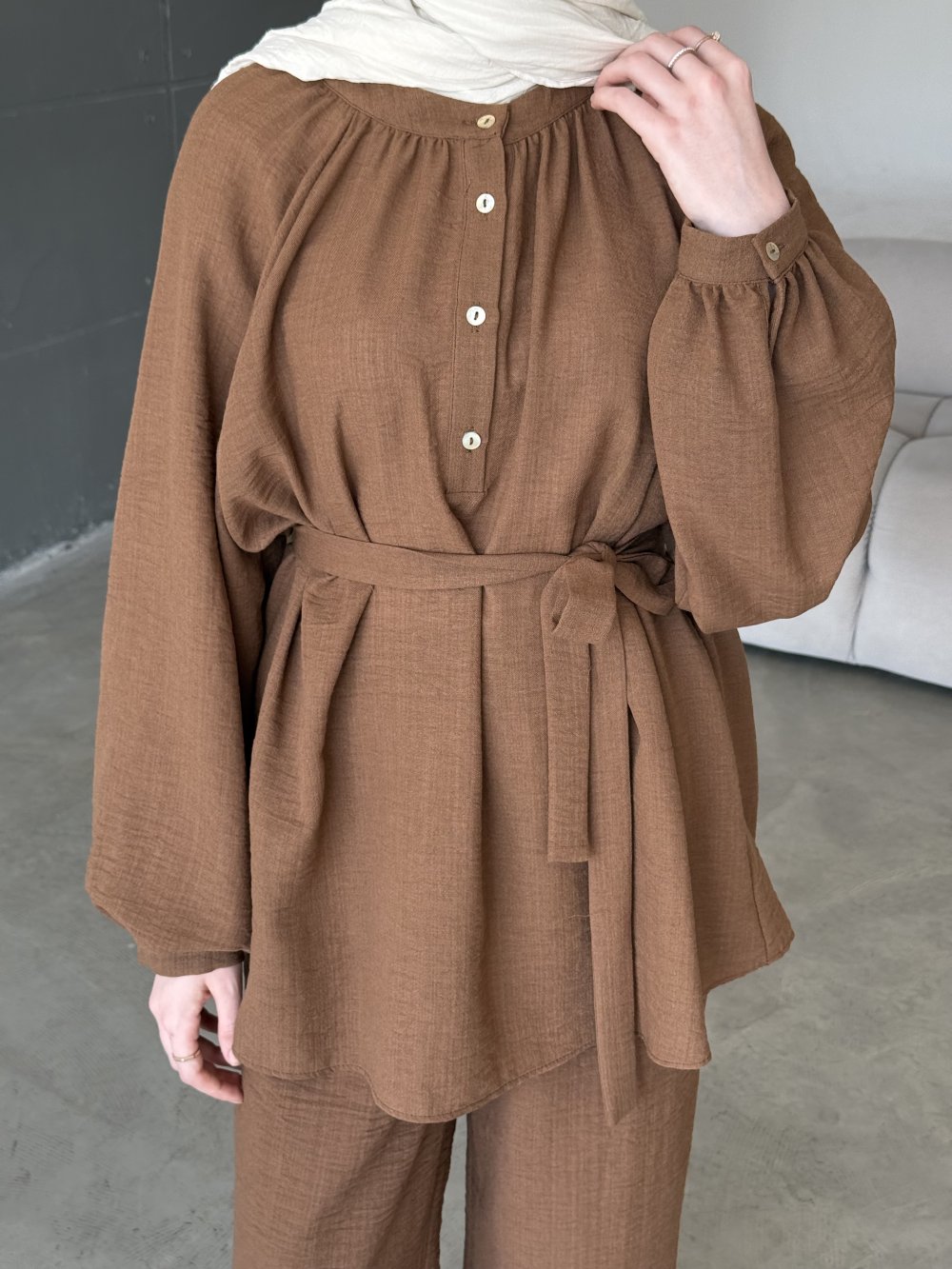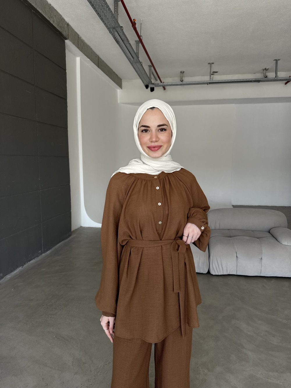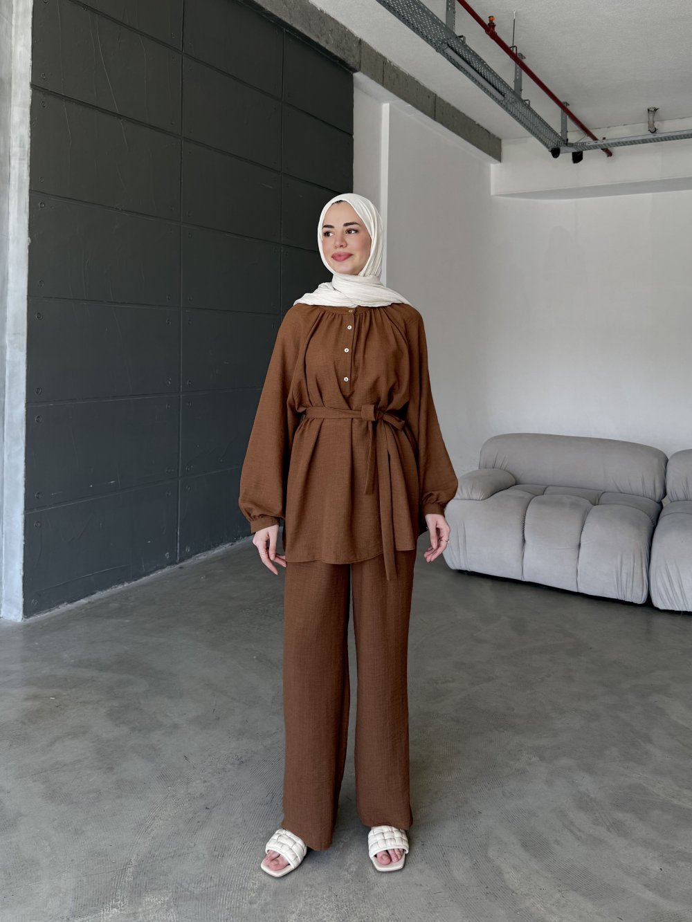 Model Detayı: Rahat kesim, bol paça pantolon ve tunik uyumu