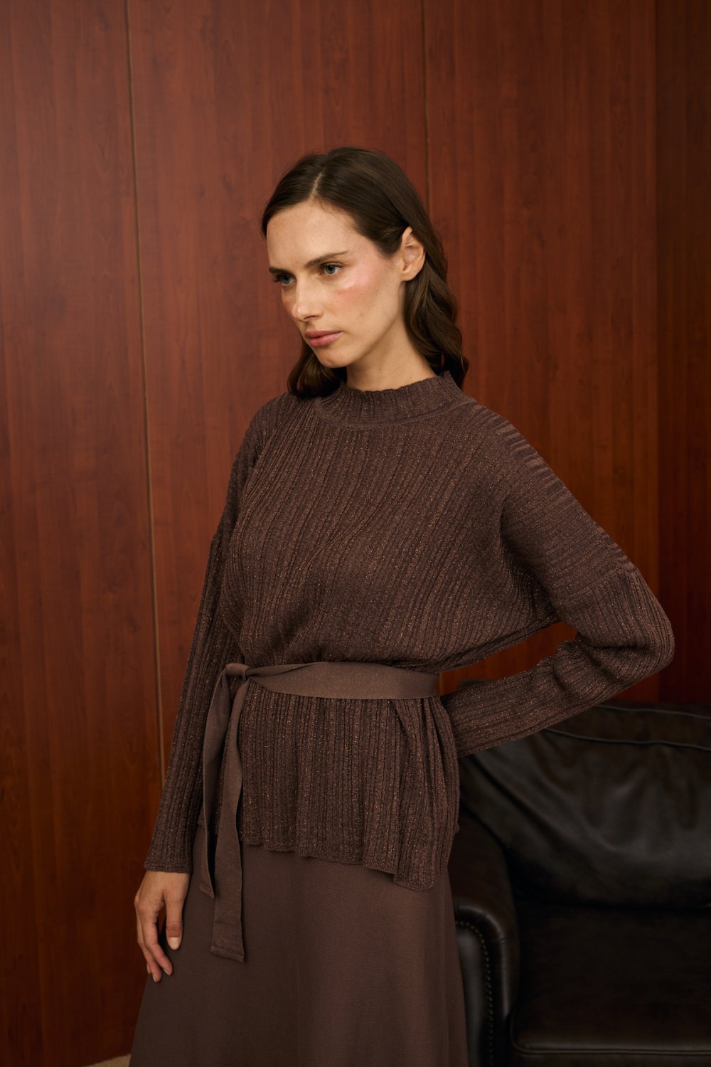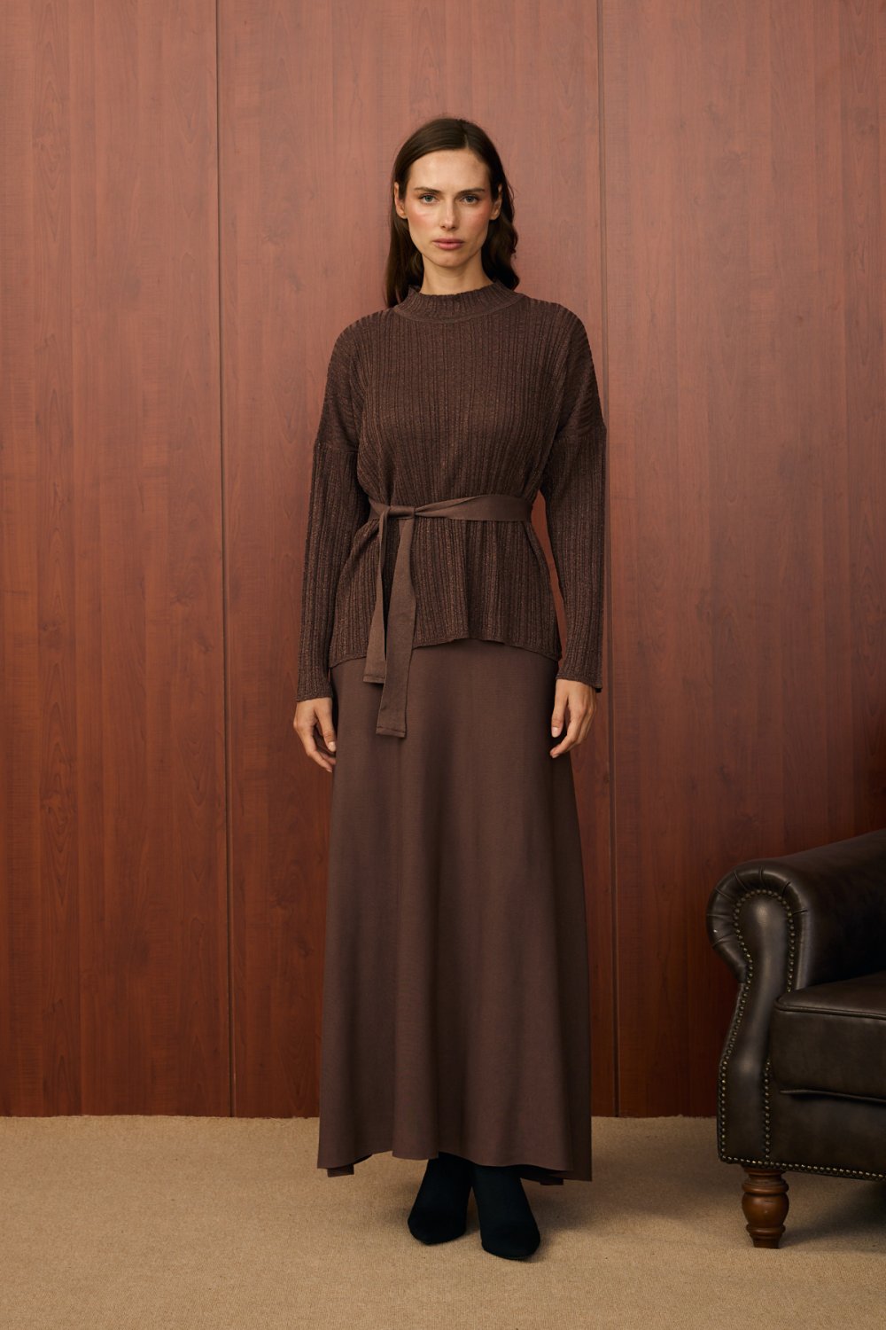 Simli Etek Takım-Kahverengi-MRW-1524
