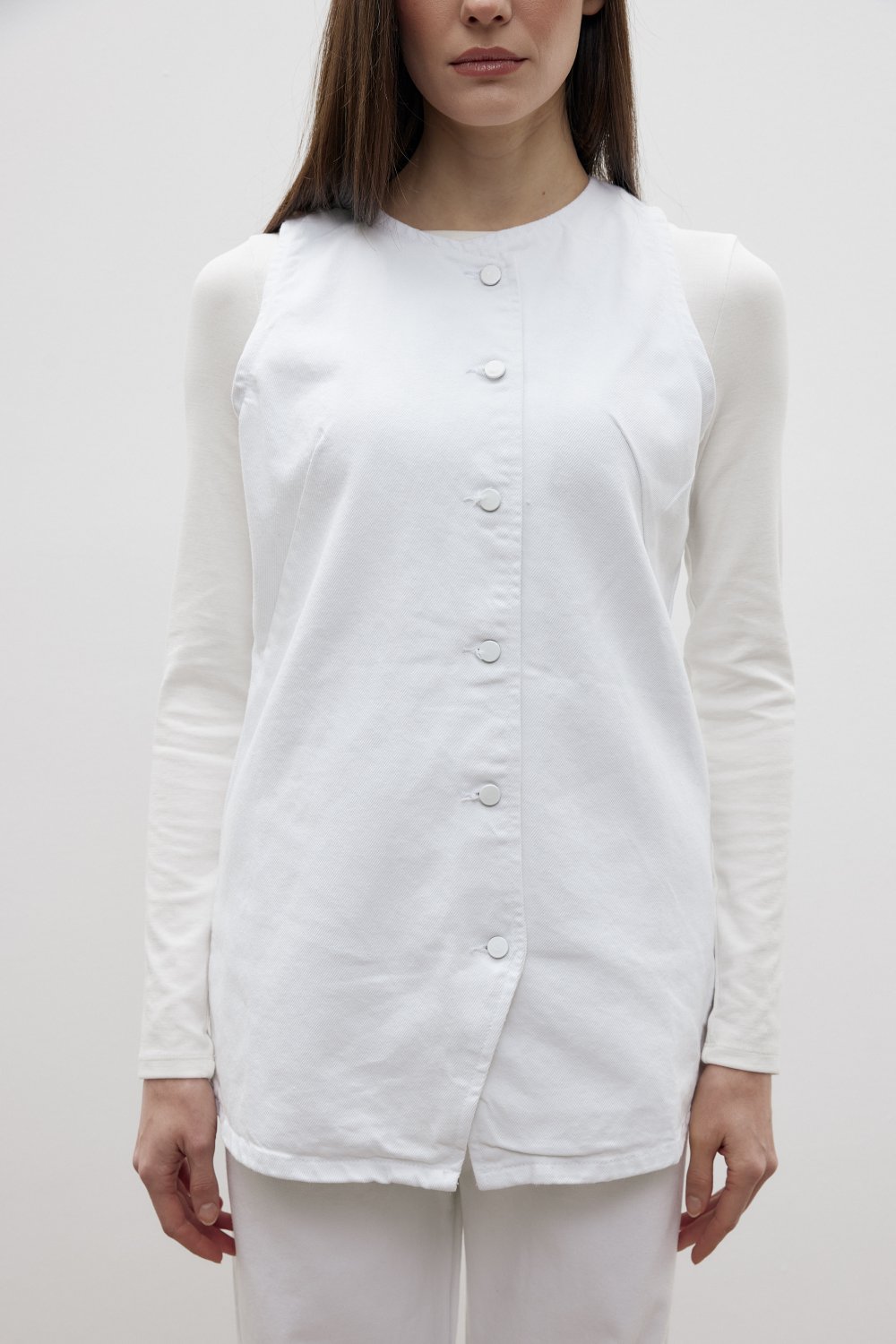 Spor Denim Yelek-Beyaz