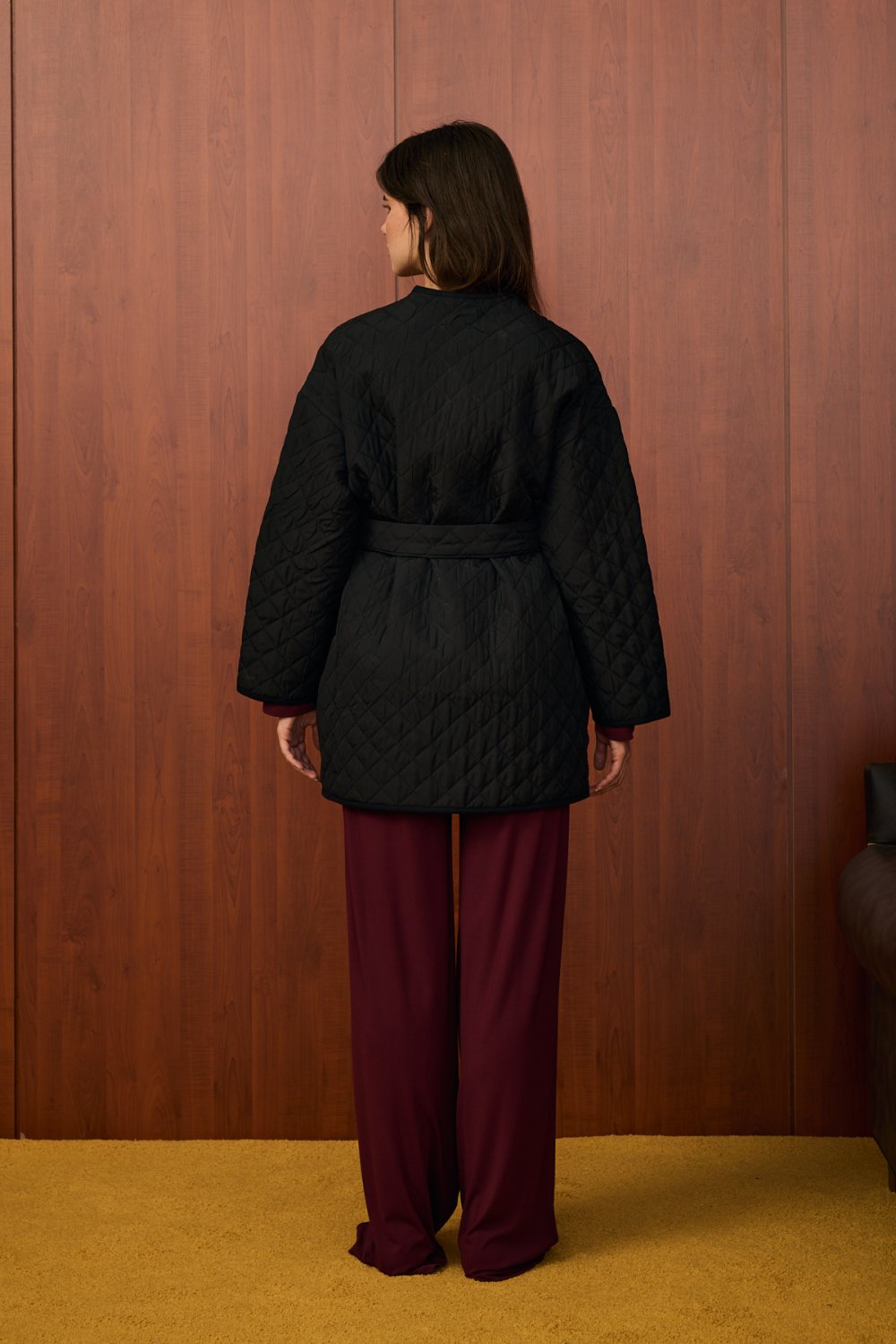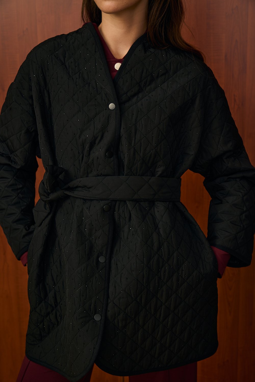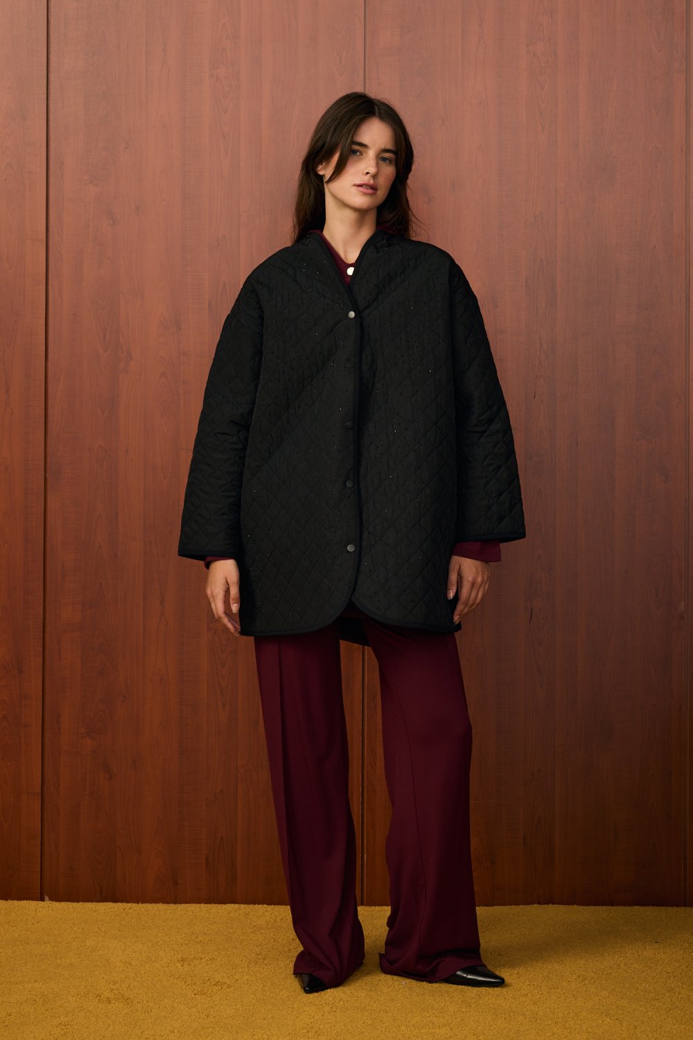Bu özel tasarım kapitone ceket ile hem şıklığı hem de konforu bir arada yaşayın. Polyester paraşüt kumaşından üretilen bu ceket, hafif ve yumuşak dokusuyla dört mevsim rahat bir kullanım sunar. Ceketin üzerine serpiştirilmiş taş detayları, ürüne ışıltılı ve göz alıcı bir dokunuş katarken, baklava desenli kapitone dikişleri ise modern bir görünüm sağlar. Bol ve rahat kesimiyle her bedene uyum sağlayan bu parça, gündelik şıklığınızın vazgeçilmezi olacak.