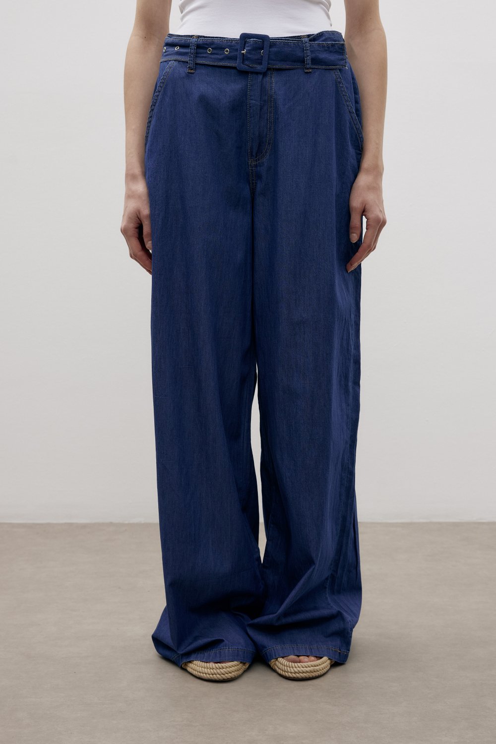 Kemer Detaylı Tensel Kot Bol Paça Pantolon - Şıklık ve Konfor Bir Arada