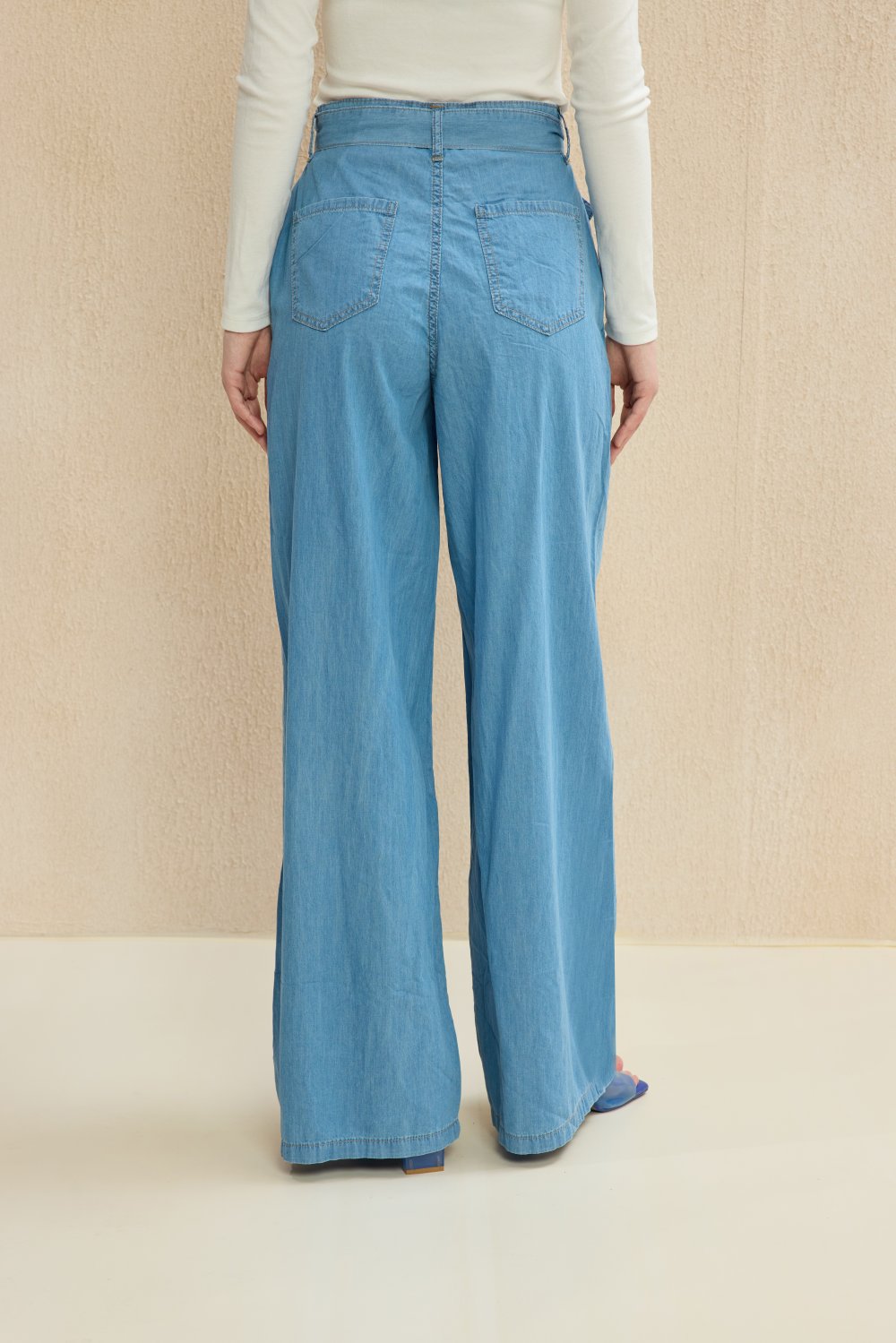 Kemer Detaylı Tensel Kot Bol Paça Pantolon - Şıklık ve Konfor Bir Arada