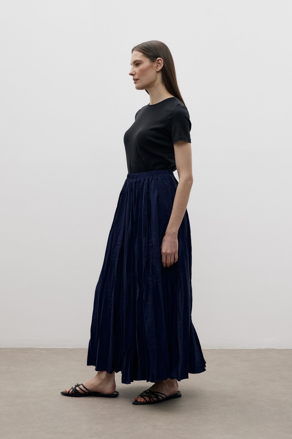 Kadın Krinkıl Kumaş Pileli Uzun Etek – Zamansız ve Şık