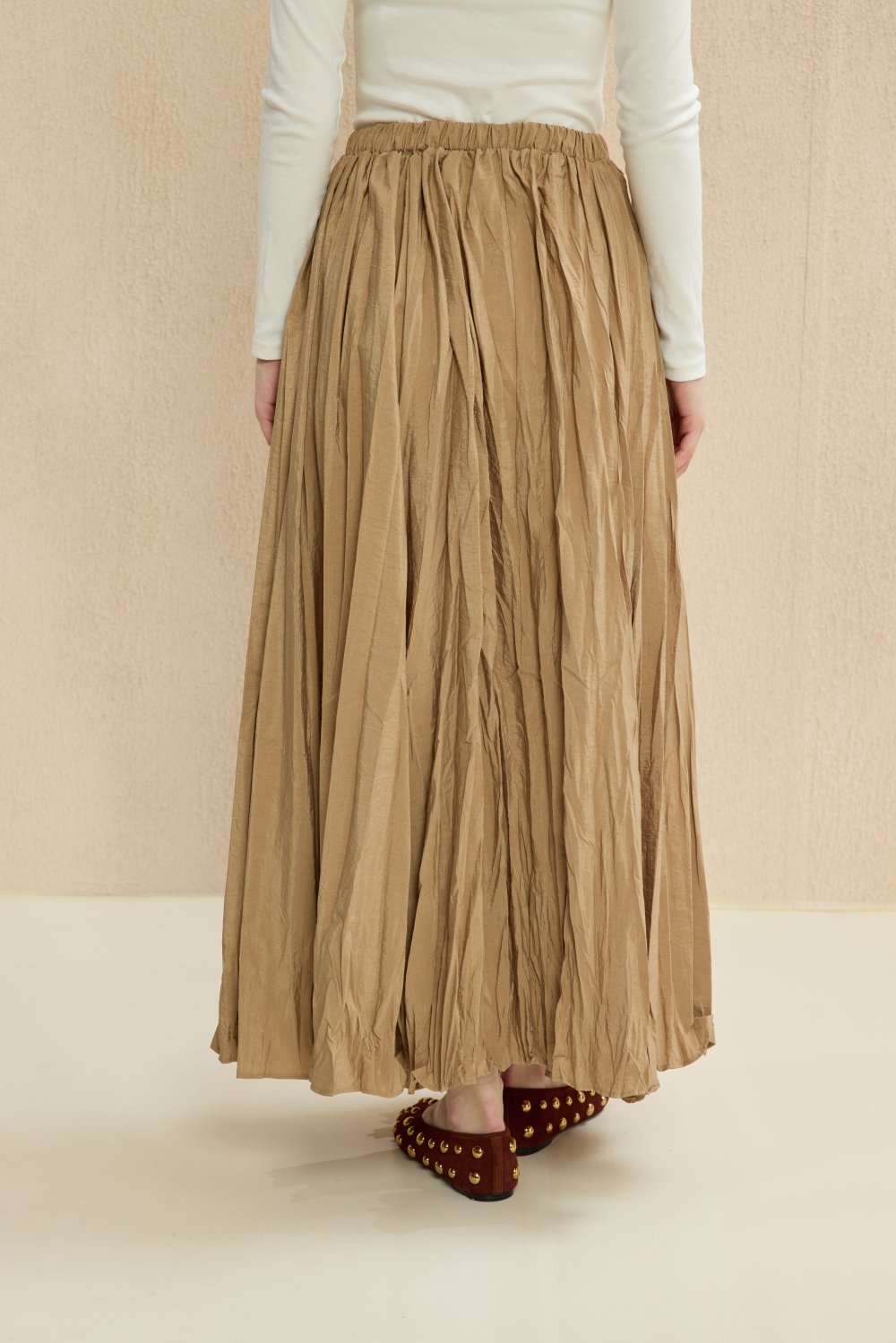 Kadın Krinkıl Kumaş Pileli Uzun Etek – Zamansız ve Şık