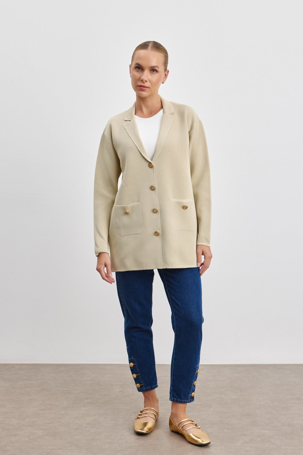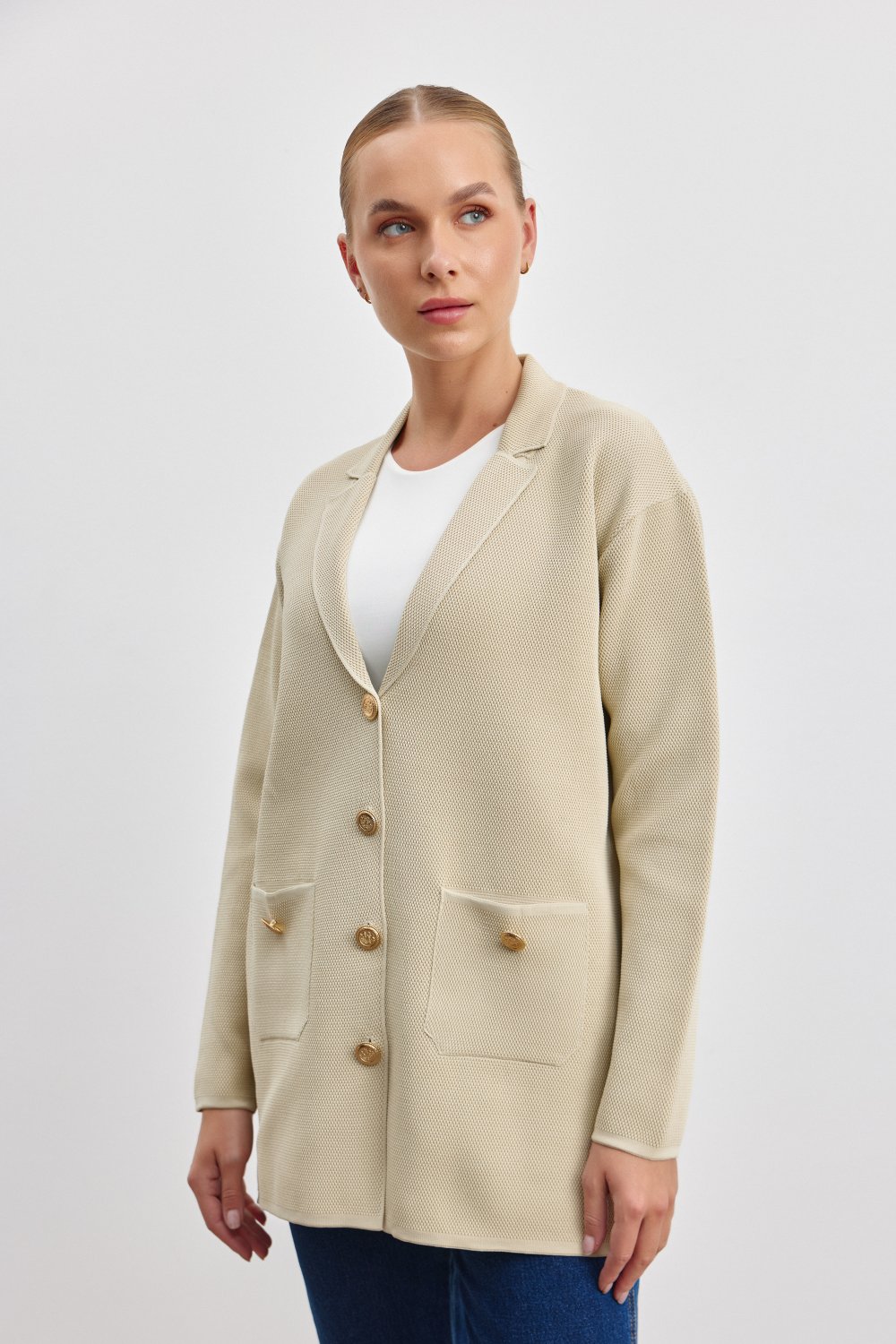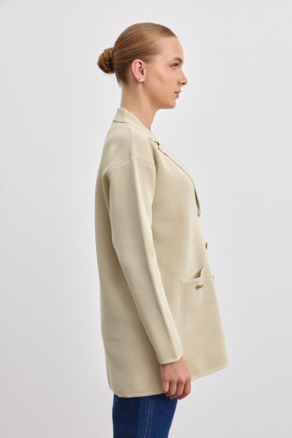 Özel İplik Triko Pamuk Örme Ceket - 75 cm Boy