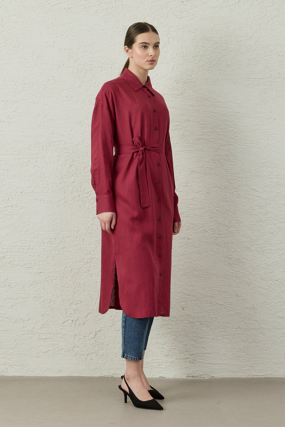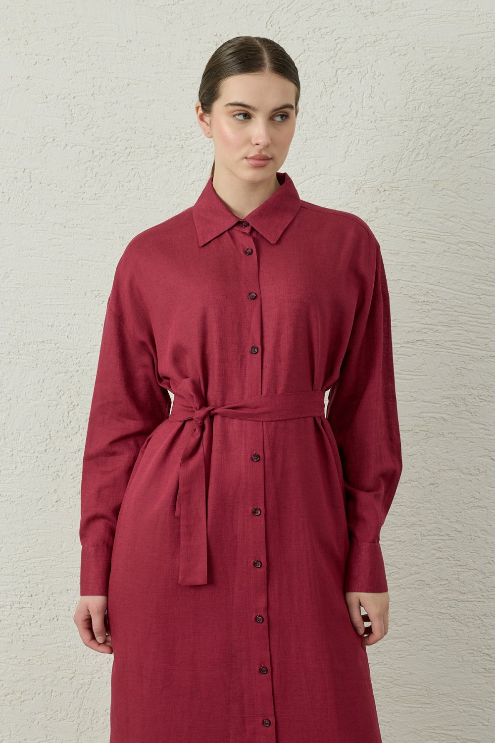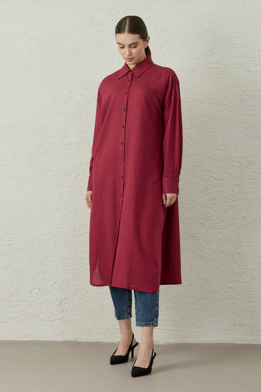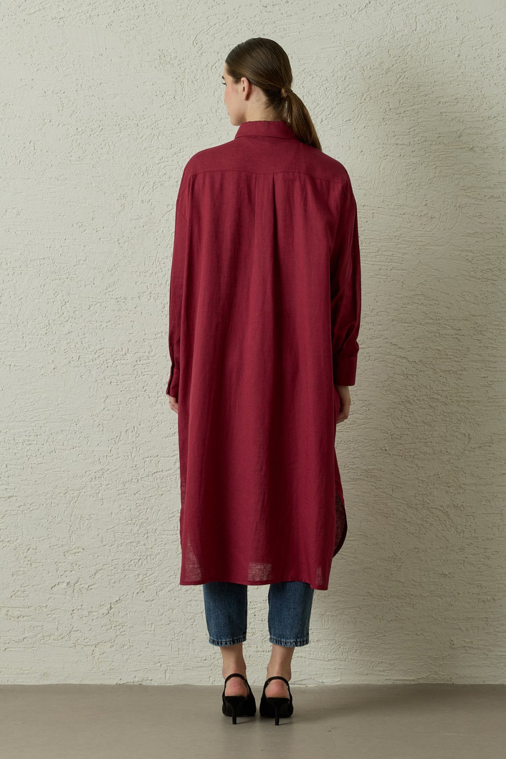 Uzun Keten Gömlek-Bordo -MRW-1811