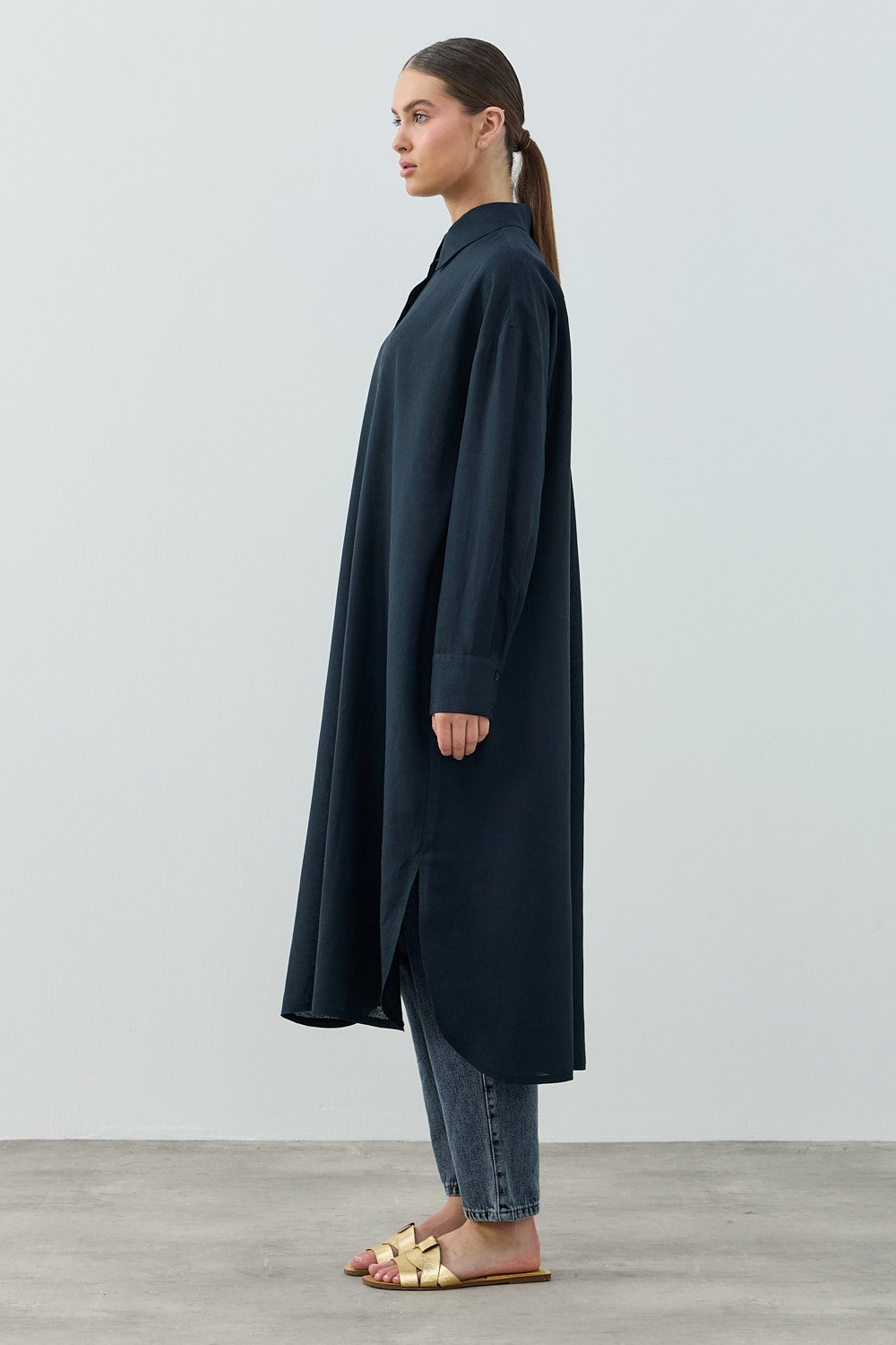 Uzun Keten Gömlek-Lacivert -MRW-1811