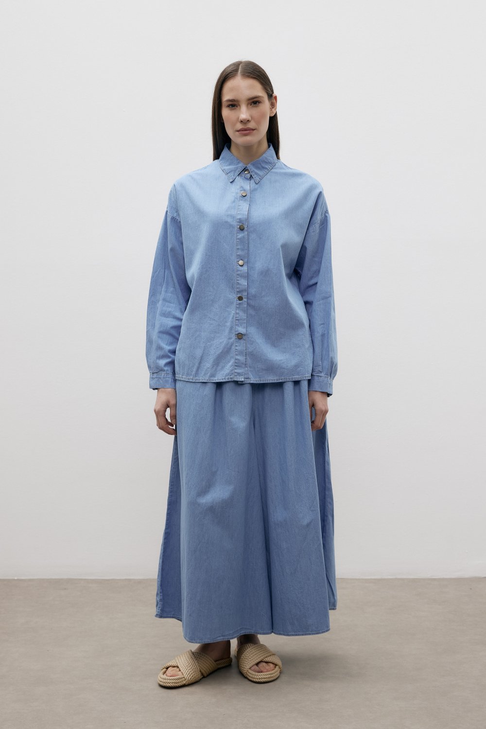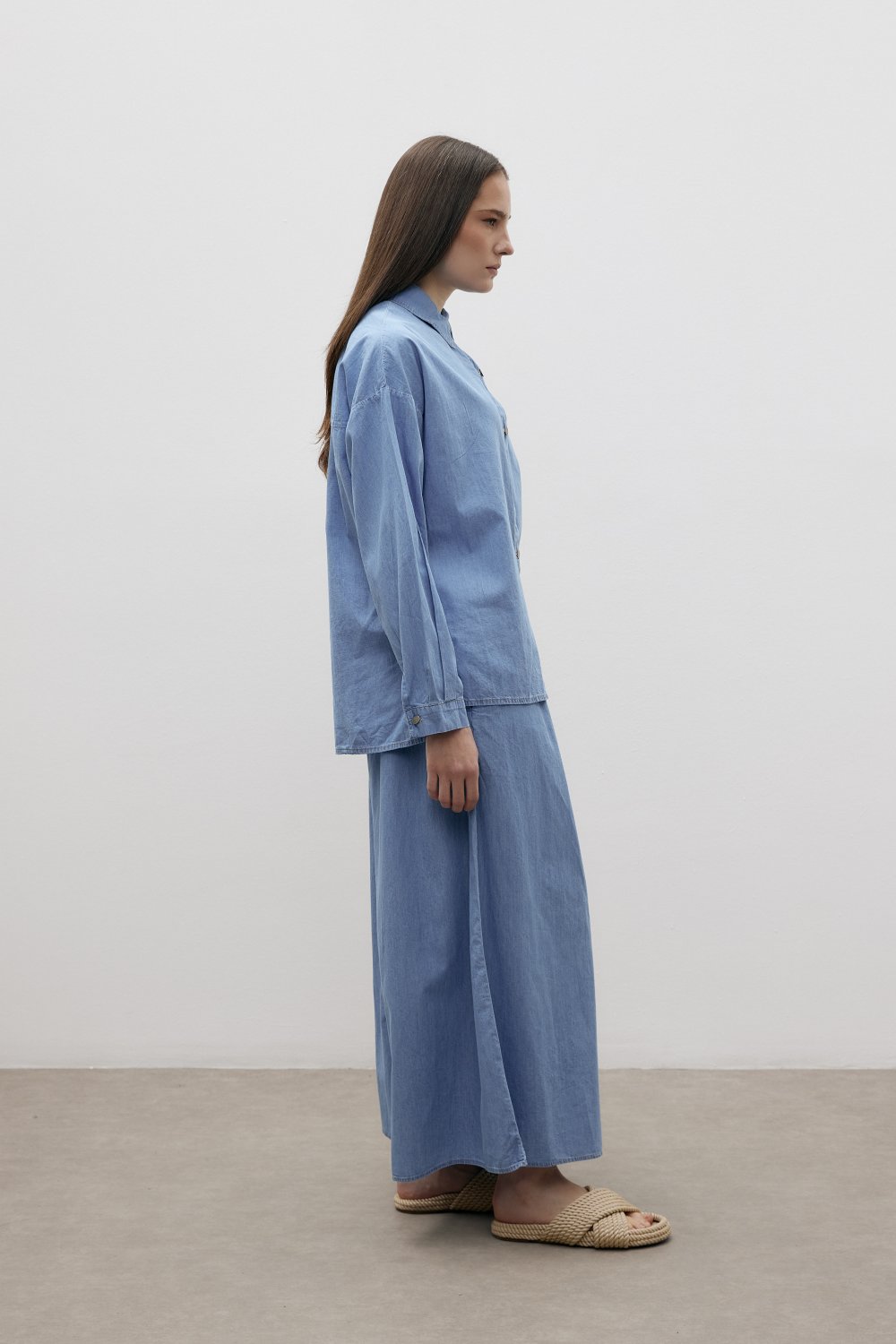 Doğal ve hafif yapısı ile öne çıkan tensel kot oversize gömlek, rahat ve şık bir görünüm sunar. Modern kesimi ve nefes alabilen tensel kumaşı sayesinde gün boyu konfor sağlar. Metal düğmeleri ve klasik gömlek yaka detayı ile hem spor hem de şık kombinlerde tercih edilebilir.
