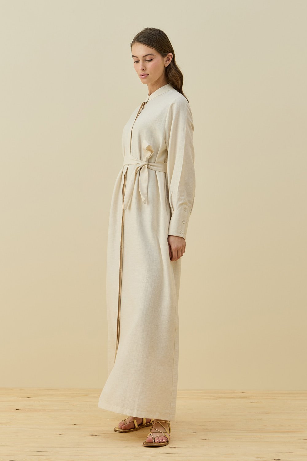 Ürün Adı: Pamuk Keten Uzun Düğmeli Elbise