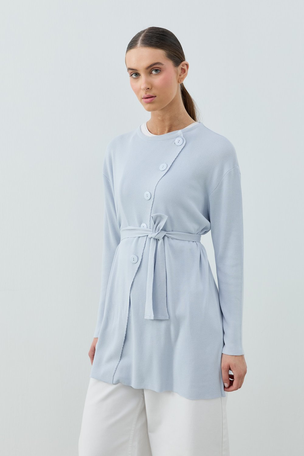 • Tasarım: Önden çapraz düğme detaylı, kuşaklı