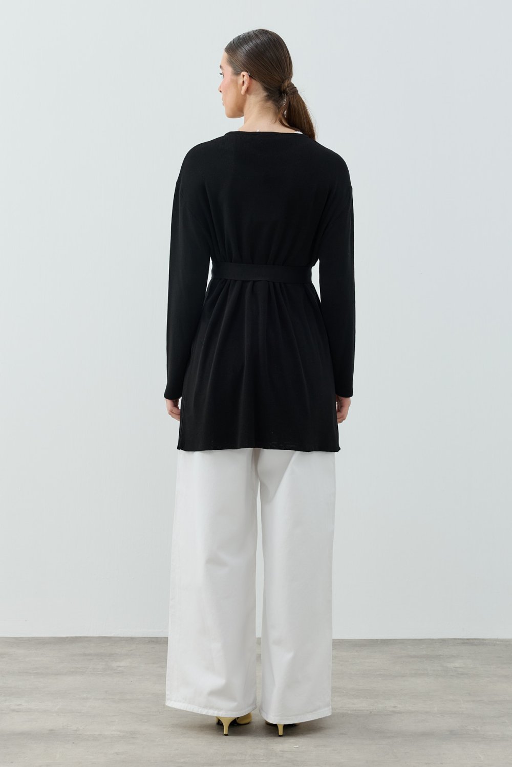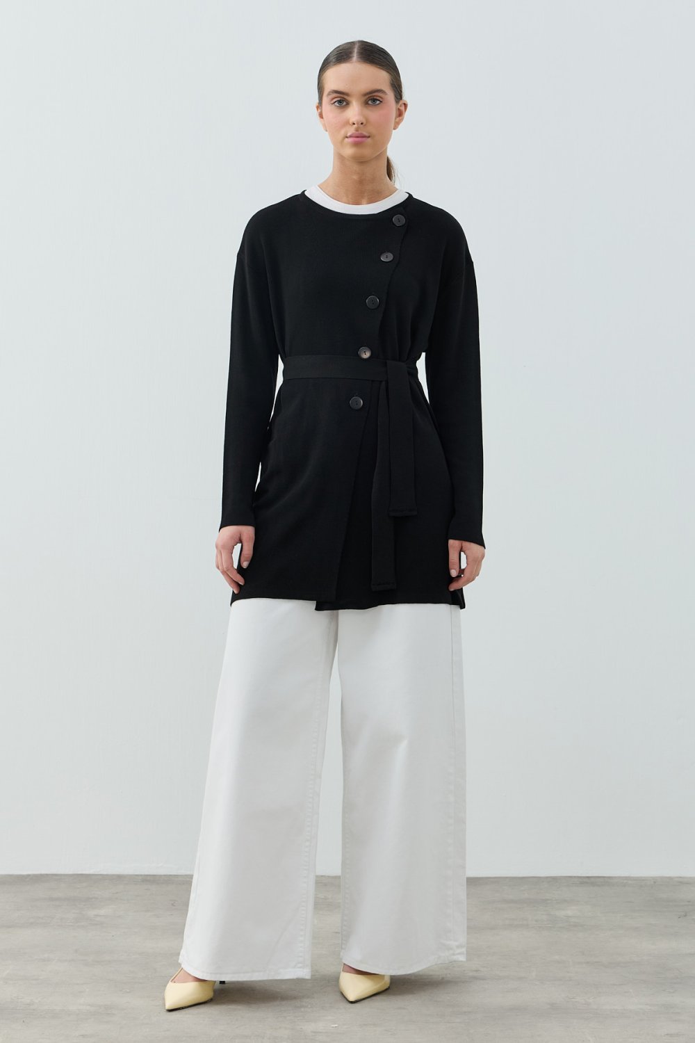 • Tasarım: Önden çapraz düğme detaylı, kuşaklı