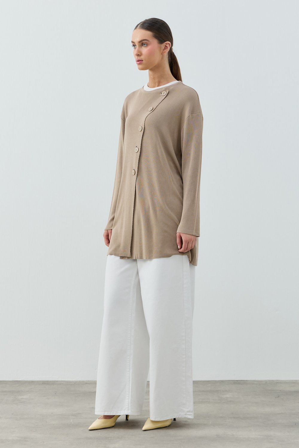 Yan Düğme Hırka-Vizon -MRW-1789