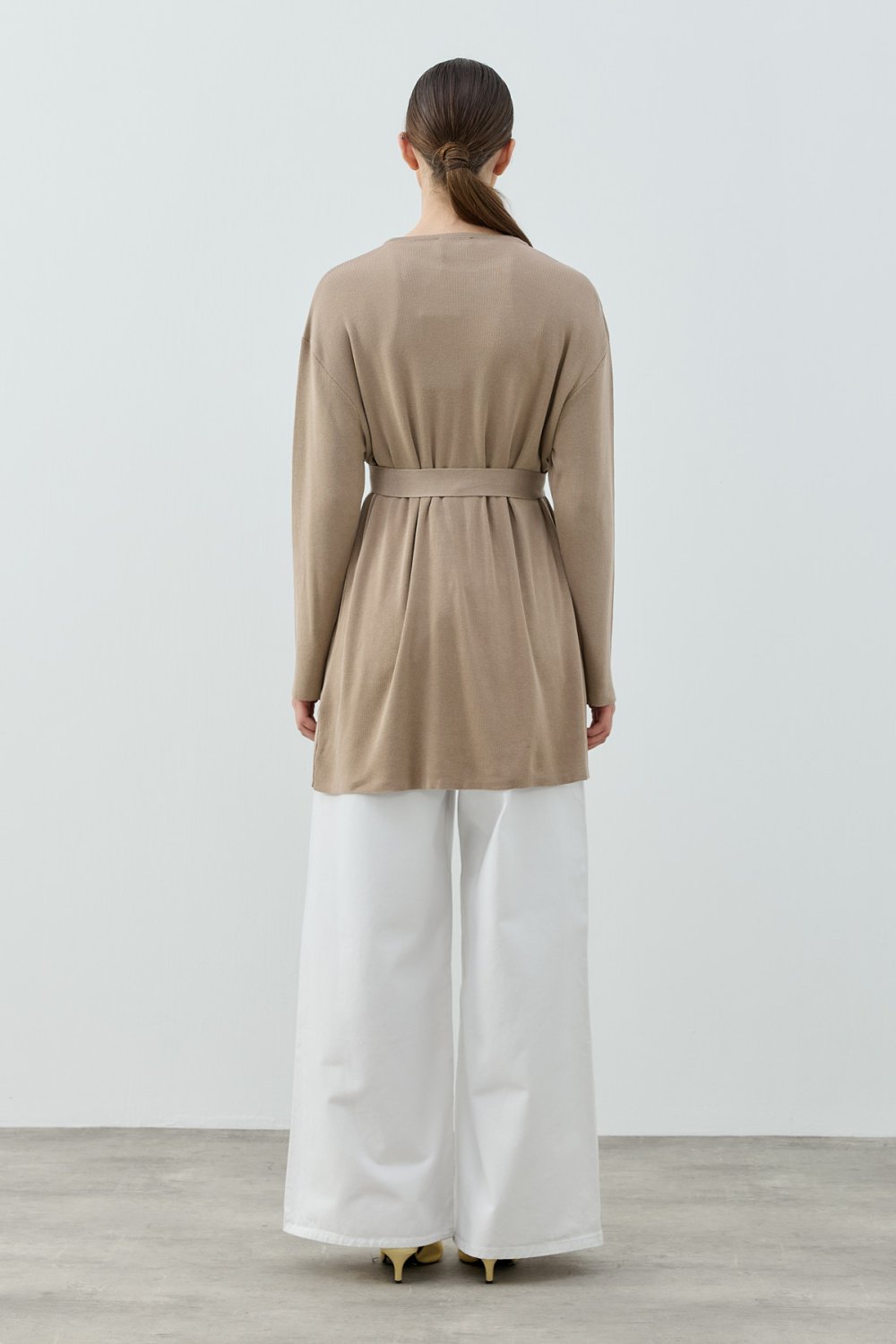 • Tasarım: Önden çapraz düğme detaylı, kuşaklı